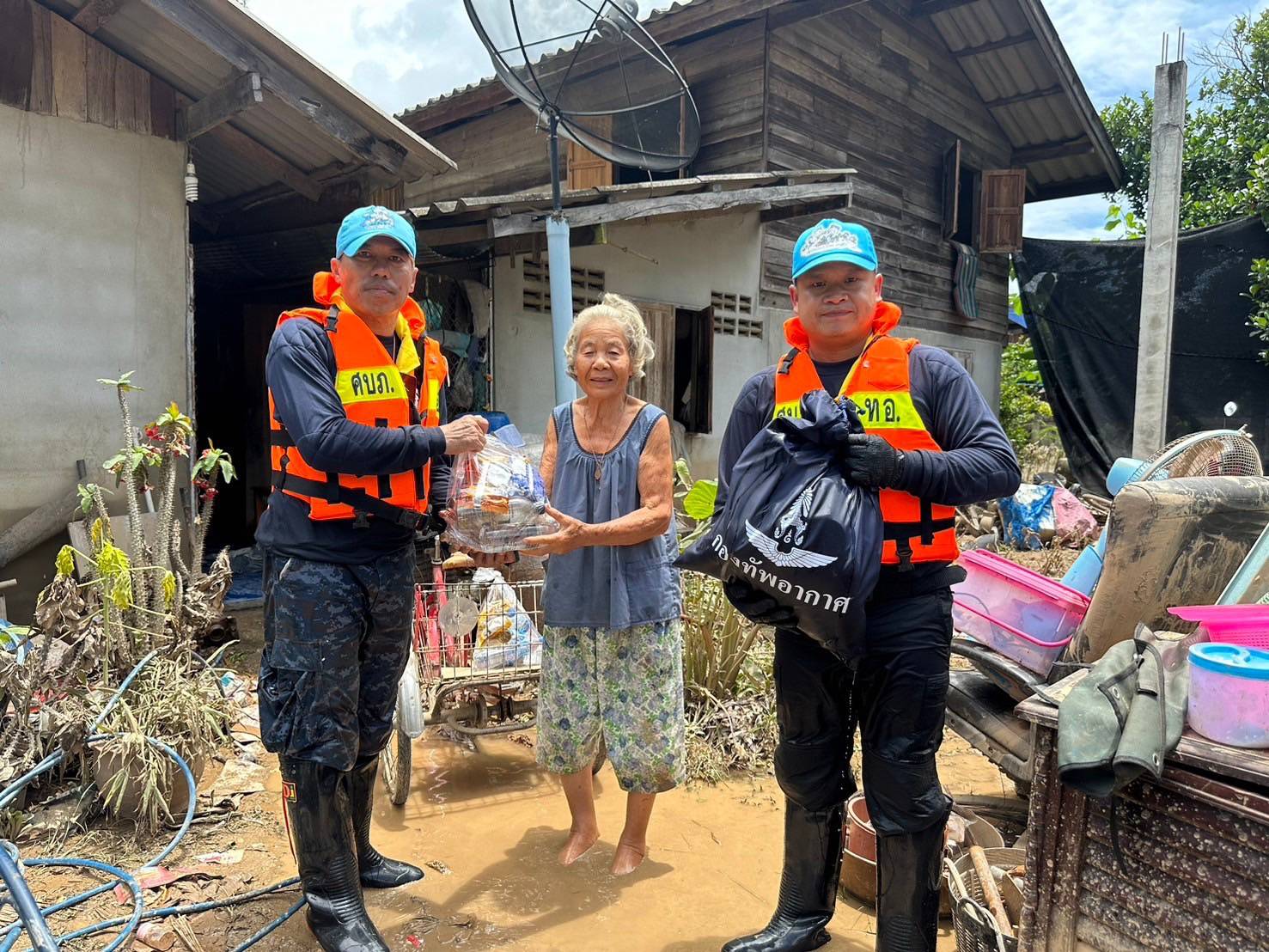 ทหารอากาศ ฝูงบิน416 ลุยน้ำมอบของยังชีพ