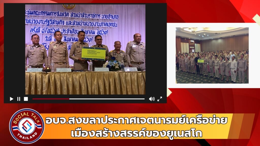 นายก อบจ. สงขลา ประกาศเจตนารมย์ความพร้อมหนุนภาครัฐเอกชนผนึกกำลังเสนอจังหวัดสงขลาสมัครเข้าเป็นสมาชิกเครือข่ายเมืองสร้างสรรค์ของยูเนสโก ณ ประเทศฝรั่งเศส ในปี 2568 เชื่อมั่นชาวสงขลาได้ประโยชน์