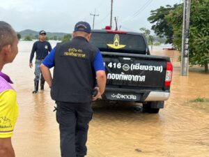 วันนี้ทางฝูงบิน 416 นำโดย ผู้ฝูงโมท นาวาอากาศโท ปราโมทย์ กุยแก้ว ร่วมกับท่าอากาศยานแม่ฟ้าหลวงเชียงราย ลงพื้นที่โดยรถบรรทุกขนาดใหญ่ของกองทัพอากาศใช้ในการขนสิ่งของ พร้อมเรืออีกหลายลำ ขนถุงยังชีพและข้าวกล่องมาให้ ซึ่งพี่น้องชาวบ้านป่าตาลและบ้านป่าข่า ต่างพากันออกมารอรับที่หอประชุม จุดศูนย์รวมของชาวบ้าน ดีใจซาบซึ้งใจ เป็นอย่างมาก