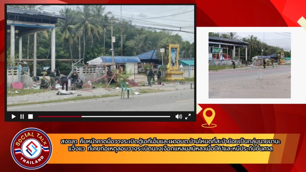 ความคืบหน้าเหตุคนร้ายลอบวางระเบิดตู้เอทีเอ็มหน้าที่ทำการอบต.บ้านโหนดและเผาสำนักงานอบต.บ้านโหนดและของของทางราชการที่จอดอยู่ภายในอบต.เสียหายเมื่อช่วงตี2เมื่อคืนนี้ ในพื้นที่่หมู่2 ต.บ้านโหนด อ.สะบ้าย้อย จ.สงขลา โดยคนร้ายมาด้วยกัน6คนขับรถจักรยานยนต์ซ้อนท้ายกันมา3คันและมีการยิงปืนขู่ตอนก่อเหตุไม่ให้ชาวบ้านออกมาดู ก่อนหลบหนีไป