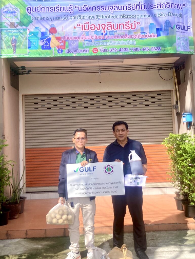 สำหรับกิจกรรมในพื้นที่ จ.ระยอง ดร.กฤษณ์ พงษ์เทพิน กล่าวว่า กลุ่มบริษัทกัลฟ์ มีนโยบายชัดเจนด้านการรักษาคุณภาพสิ่งแวดล้อม และร่วมพัฒนาฟื้นฟูสิ่งแวดล้อมที่ยั่งยืน กรณีตัวอย่างเช่น ในช่วง 3 ปี (ปี 2565-2567 ) ที่ผ่านมา ได้ส่งเสริมจัดตั้งศูนย์เรียนรู้และธนาคารจุลินทรีย์ กลุ่มวิสาหกิจชุมชนกลุ่มประมงเรือเล็กหาดสุชาดา ต.เนินพระ อ.เมือง จ.ระยอง โดยมีการอบรมความรู้และแปรรูปผลิตภัณฑ์ จากเศษอาหาร เศษปลา ก้างปลา (ปลาเห็ดโคลน) ที่ชาวบ้านแล่เนื้อขายจะมีเศษปลา ซึ่งเดิมทิ้งเป็นขยะซึ่งจะก่อเกิดมลภาวะชุมชน ได้นำความรู้สู่ชุมชน “เปลี่ยนขยะเป็นประโยชน์” ด้วยกระบวนการหมักแบบชีวภาพ ผลิตเป็น ฮอล์โมนปลาหมัก ปุ๋ยหมักแบบอินทรีย์ การผลิตจุลินทรีย์ก้อน (EM ball) ปุ๋ยน้ำจากปลาทะเล (ซึ่งราคาขายในท้องตลาดลิตรละ 120-150 บาท ) แปรูปเป็นน้ำยาล้างจาน ล้างรถ ล้างห้องน้ำ น้ำยาเอนกประสงค์ จุลินทรีย์ ฯลฯ สามารถนำไปใช้ในการเกษตรพืชชนิดต่างๆ ปศุสัตว์ การบำบัดน้ำเสียในครัวเรือน แม่น้ำลำคลอง ป่าไม้ ป่าชายเลน ฯลฯ สามารถ การใช้ดูแลสิ่งแวดล้อมในครัวเรือนและจำหน่ายสร้างอาชีพ เพิ่มรายได้แก่ชุมชนได้จริง เป็นต้น ปี 2565 บริษัทกัลฟ์ ร่วมกับ วิสาหกิจกลุ่มประมงเรือเล็กหาดสุชาดา ฯ เทศบาลตำบลเนินพระ อ.เมือง จ.ระยอง จัดโครงการฟื้นฟูป่าชายเลนที่เสื่อมโทรม โดยนำความรู้เกี่ยวกับนวัตกรรมจุลินทรีย์ที่มีประสิทธิภาพ ฯ ที่ได้จากการผลิตของวิสาหกิจชุมชนฯที่อบรมไว้ โดยใช้ปุ๋ยน้ำชีวภาพจากจุลินทรีย์ และ จุลินทรีย์บอล นำไปใช้ปรับสภาพดิน น้ำ และใช้เป็นปุ๋ยหรือธาตุอาหาร พร้อมกับฟื้นฟูจุลินทรีย์ในสภาพแวดล้อมดินน้ำป่าของป่าชายเลนฯ ช่วยย่อยเศษใบไม้ อินทรีย์วัตถุในป่าชายเลน ฯลฯ ตั้งแต่ปี 2565 ถึงปัจจุบัน มีสภาพที่ดีขึ้นพร้อมทั้งร่วมกับชุมชนและชาวประมง ปลูกป่าชายเลนเพิ่มเติม กว่า 5,000 ต้น ประสบผลสำเร็จอย่างดีมี อัตราการรอดกว่า 80 % และเจริญเติบโตมาก จากที่เริ่มปลูกกล้าใหม่มีความสูงประมาณ 30 เซนติเมตร ผ่านไป 2 ปี เศษ เติบโตดีมาก สูงกว่า 1.50 – 2.50 เมตร ใบเขียว แผ่กิ่งก้านรากแข็งแรงและปัจจุบันยังร่วมกับชุมชนฟื้นฟูอย่างต่อเนื่อง อีกโครงการหนึ่ง Gulf ร่วมนำยุทธศาสตร์เมืองจุลินทรีย์ ร่วมกับสื่อมวลชนและภาคประชาสังคม จ.ระยอง จัดทำโครงการ “ระยองไม่เทรวม” โครงการแยกขยะเพื่อสิ่งแวดล้อม ลดขยะเศษอาหารของเมือง โดยนำองค์ความรู้ด้านจุลินทรีย์ ฯ (ฐานชีวภาพ) มาใช้รณรงค์การแยกขยะร่วมกับชุมชน และสนับสนุนจัดตั้งศูนย์เรียนรู้และธนาคารจุลินทรีย์ ฯชุมชนเป็นต้นแบบ นำขยะเศษอาหารจากครัวเรือน และ