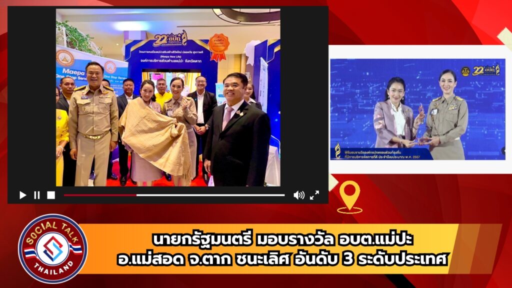 1 พ.ย. 2567 นางสาวแพทองธาร ชินวัตร นายกรัฐมนตรี มอบรางวัลแก่ องค์การบริหารส่วนตำบลแม่ปะ อ.แม่สอด จ.ตาก โดยมี มีนางสาวธนชพร ต๊ะทองคำ นายก อบต.แม่ปะฯ รับมอบ งาน 22 ปี อปท ที่มีการบริหารจัดการที่ดี พร้อมรางวัล 1.3 ล้านบาท