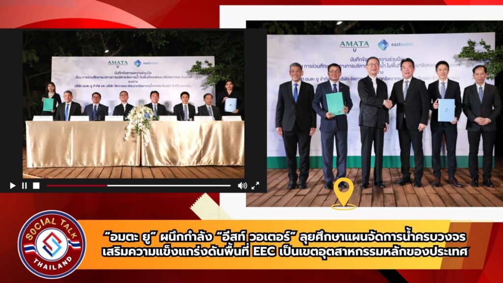 กรุงเทพฯ – 5 พฤศจิกายน 2567 บริษัท อมตะ ยู จำกัด และบริษัท จัดการและพัฒนาทรัพยากรน้ำภาคตะวันออก จำกัด (มหาชน) หรือ อีสท์ วอเตอร์ ได้ลงนามในบันทึกข้อตกลงความร่วมมือ (MOU) เพื่อศึกษาและพัฒนาแนวทางการบริหารจัดการน้ำในเขตพัฒนาพิเศษภาคตะวันออก หรือ อีอีซี โดยมุ่งหวังพัฒนาศักยภาพเพื่อเสริมความมั่นคงและสร้างความยั่งยืนในการบริหารทรัพยากรน้ำให้เพียงพอต่อการขยายตัวของภาคอุตสาหกรรม