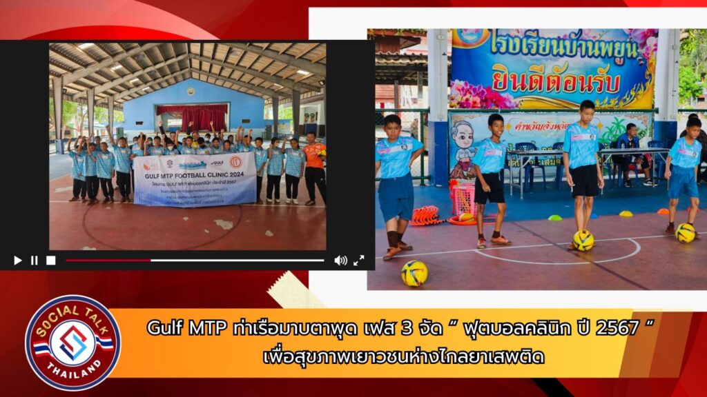 วันที่ 13 พฤศจิกายน 2567 โครงการพัฒนาท่าเรืออุตสาหกรรมมาบตาพุด ระยะที่ 3 โดยบริษัท กัลฟ์ เอ็มทีพี แอลเอ็นจี เทอร์มินอล จำกัด (GMTP) สำนักงานท่าเรืออุตสาหกรรมมาบตาพุด(สทร.) จัด “โครงการ GULF MTP ฟุตบอลคลินิก ประจำปี 2567” ณ โรงเรียนวัดมาบชลูด โรงเรียนบ้านพยูน โรงเรียนวัดพลา พร้อมมอบอุปกรณ์กีฬาฟุตบอล เพื่อสนับสนุนและส่งเสริมให้เยาวชนรู้จักออกกำลังกาย ใช้เวลาว่างให้เกิดประโยชน์ และ ห่างไกลยาเสพติด ส่งเสริมความสามัคคีของเยาวชน และเปิดโอกาสให้มีการแลกเปลี่ยนประสบการณ์ เพื่อสร้างแรงจูงใจในการก้าวสู่นักฟุตบอลอาชีพ และได้รับความรู้และประสบการณ์จากการฝึกทักษะพื้นฐานฟุตบอลที่ถูกต้อง