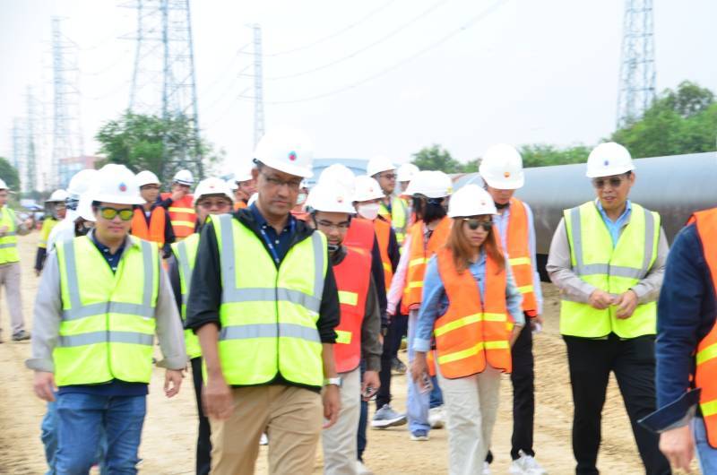 คุณชาญยุทธ เสือจุ้ย ผู้อำนวยการโครงการระบบท่อส่งก๊าซธรรมชาติบนบกจากบางปะกงไปโรงไฟฟ้าพระนครใต้ , คุณเรืองศักดิ์ วงศ์วันดี ผู้จัดการฝ่ายสนับสนุนโครงการ , คุณอธิชย์ ธีรภัทรสกุล ผู้จัดการฝ่ายจัดการสิ่งแวดล้อมโครงการพร้อมด้วยทีมงาน ให้การต้อนรับคณะผู้บริหารและเจ้าหน้าที่จากกรมธุรกิจพลังงาน (ธพ.) นำโดยคุณบุษยานาฏ นิลวงศ์ ผู้อำนวยการกองความปลอดภัยธุรกิจก๊าซธรรมชาติ เข้าร่วมรับฟังการบรรยายข้อมูลรายละเอียดโครงการแผนงานการก่อสร้าง วิธีการก่อสร้าง การดูแลผลกระทบต่อชุมชน ตลอดจนมาตรการดูแลและลดผลกระทบงานก่อสร้างตามการประเมินผลกระทบสิ่งแวดล้อม (EIA) ของโครงการระบบท่อส่งก๊าซธรรมชาติบนบกจากบางปะกงไปโรงไฟฟ้าพระนครใต้ พร้อมลงพื้นที่เยี่ยมชมพื้นที่งานก่อสร้างวางท่อส่งก๊าซธรรมชาติช่วงบริเวณพาดผ่านแม่น้ำบางปะกง ด้วยวิธีการเจาะลอด (Horizontal Directional Drilling: HDD) โดยมีระยะทางประมาณ 1.5 กิโลเมตร ทั้งนี้มีผู้เข้าร่วมจากกรมธุรกิจพลังงาน จำนวน 30 ท่าน