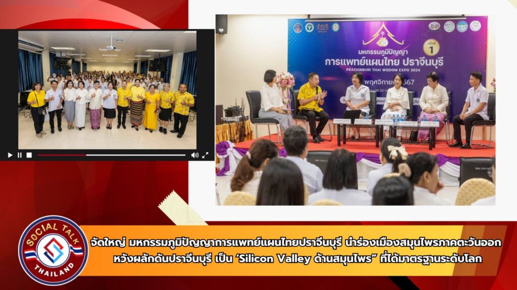 วันที่ 14 พฤศจิกายน 2567 สำนักงานสาธารณสุข จ.ปราจีนบุรี ร่วมกับ รพ.เจ้าพระยาอภัยภูเบศร และ ภาคีเครือข่าย จัดงานมหกรรมภูมิปัญญาการแพทย์แผนไทยปราจีนบุรี ครั้งที่ 1 ภายใต้แนวคิด “สืบสานภูมิปัญญาพื้นบ้าน สร้างสรรค์นวัตกรรม เสริมพลังการแพทย์แผนไทย เพื่อสุขภาวะประชาชน” เปิดประสบการณ์สุขภาพด้วยศาสตร์การแพทย์แผนไทย และสมุนไพร เพื่อเสริมความเข้มแข็งด้านสุขภาพด้วยภูมิปัญญาแผนไทย