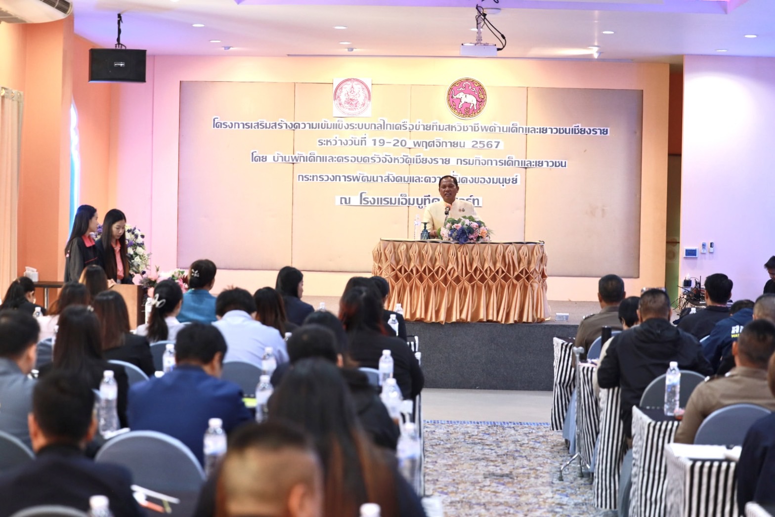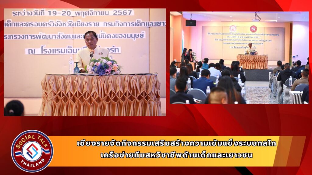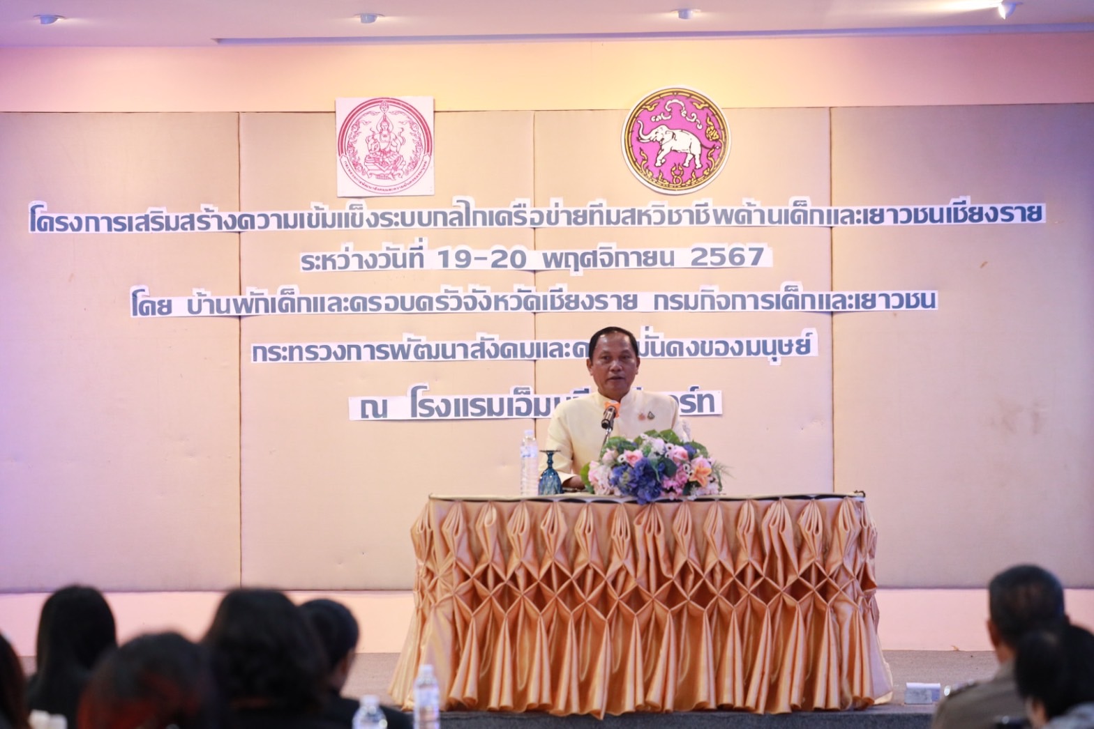วันนี้ ( 19 พ.ย.67 ) นายประสงค์ หล้าอ่อน รองผู้ว่าราชการจังหวัดเชียงราย เป็นประธานในพิธีเปิดโครงการเสริมสร้างความเข้มแข็งระบบกลไกเครือข่ายทีมสหวิชาชีพด้านเด็กและเยาวชนจังหวัดเชียงราย ณ โรงแรมเอ็มบูทีค รีสอร์ทเชียงราย โดยมีหัวหน้าบ้านพักเด็กและครอบครัวจังหวัดเชียงราย หัวหน้าหน่วยงานในสังกัดกระทรวงการพัฒนาสังคมและความมั่นคงของมนุษย์จังหวัดเชียงราย ทีม ONE HOME พม.เชียงราย ผู้แทนอำเภอ องค์กรปกครองส่วนท้องถิ่นและหน่วยงานที่เกี่ยวข้องร่วมกิจกรรม