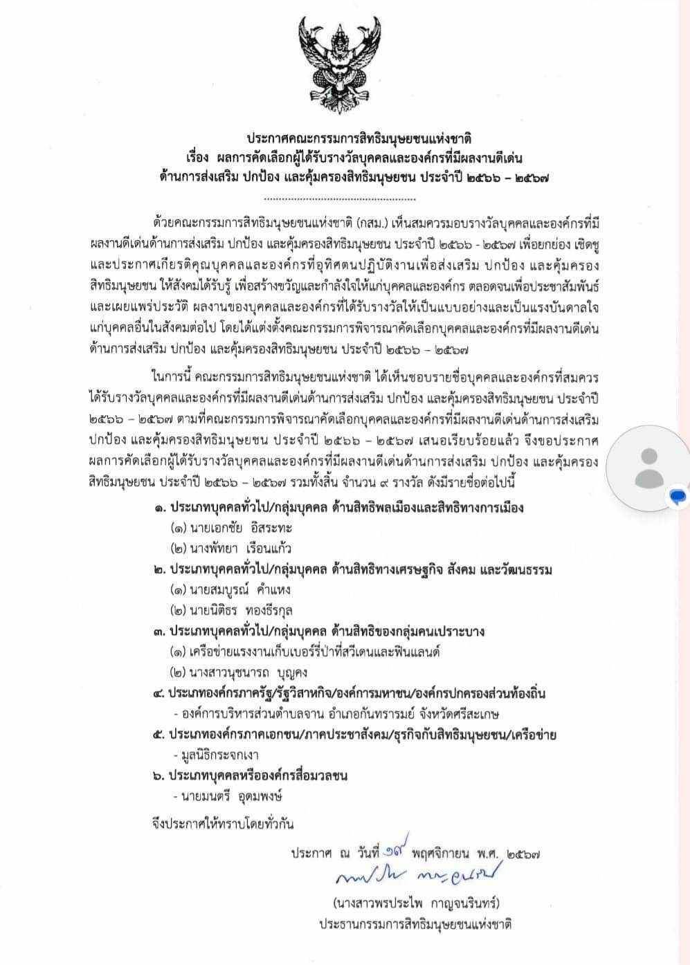 จากกรรมการสิทธิมนุษยชนแห่งชาติ