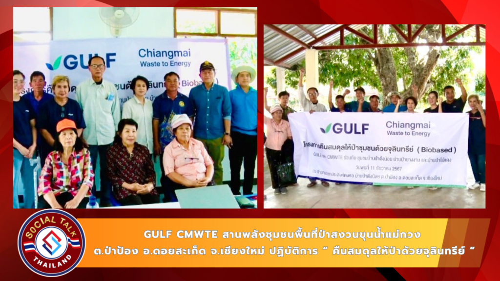 วันที่ 11 ธันวาคม 2567 มีการจัดโครงการ “ คืนสมดุลให้ป่าด้วยจุลินทรีย์ ” ซึ่งเป็นโครงการต่อเนื่องในพื้นที่ ตำบลป่าป้อง อำเภอดอยสะเก็ด จังหวัดเชียงใหม่ นำโดย บริษัทกัลฟ์ เอ็นเนอร์จี ดีเวลลอปเมนท์ จัด (มหาชน) หรือ GULF ร่วมกับ บริษัทเชียงใหม่ เวสท์ ทู เอ็นเนอร์จี จำกัด ( CMWTE ) บริหารโครงการโดย นายจิรศักดิ์ มีสัตย์ ผอ.บริหารฝ่ายชุมชนสัมเพันธ์ ผู้รับผิดชอบโครงการและวิทยากร โดย ดร.กฤษณ์ พงษ์เทพิน ผช.ผอ.ฝ่ายชุมชนสัมพันธ์ นายพงษ์พิเชษฐ์ ไชยเวช เจ้าหน้าที่ฝ่ายชุมชนสัมพันธ์ (GULF) ร่วมกับ ผู้นำชุมชนพื้นที่ป่าสงวนขุนน้ำแม่กวง ต.ป่าป้อง อ.ดอยสะเก็ด จ.เชียงใหม่ โดยผู้นำชุมชนจาก 3 หมู่บ้าน ได้แก่ นส.จันทร์จิรา จำปาอิน ผู้ใหญ่บ้านหมู่ 1 บ้านป่าตึงน้อย นายเสน่ห์ ธรรมภักดี ผู้ใหญ่บ้านหมู่ 7 บ้านป่ายางงาม นายศุภกิจ พิลัยหล้า ผู้ใหญ่บ้านหมู่ 2 บ้านป่าไม้แดง ตำบลป่าป้อง นายเสน่ห์ ธรรมภักดี ผู้ใหญ่บ้านหมู่ 7 บ้านป่ายางงาม อำเภอดอยสะเก็ด จังหวัดเชียงใหม่ และ อดีตกำนัน นายอำนวย ทิพย์จักร ผู้นำอาวุโส ที่สืบทอดเรื่องของการอนุรักษ์ป่าและดูแลป่ามาจนถึงปัจจุบัน และผู้นำอาวุโสชุมชนอีกหลายท่าน