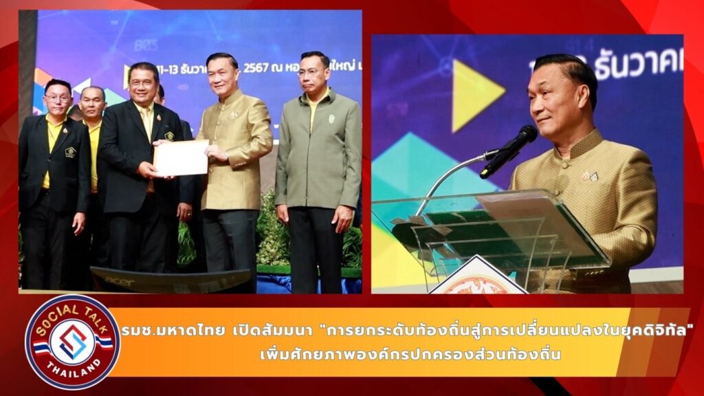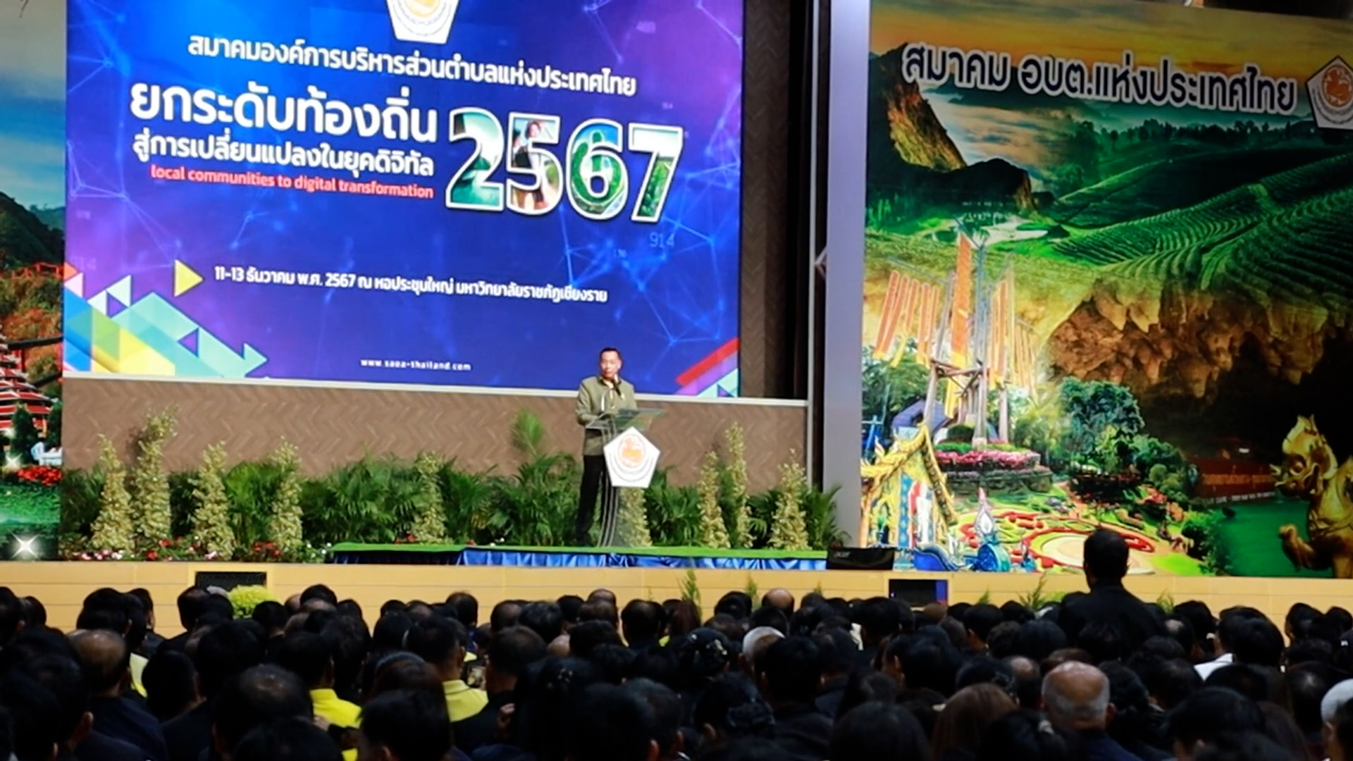วันนี้ (12 ธันวาคม 2567) ณ หอประชุมใหญ่มหาวิทยาลัยราชภัฏเชียงราย อำเภอเมืองเชียงราย จังหวัดเชียงราย นายทรงศักดิ์ ทองศรี รัฐมนตรีช่วยว่าการกระทรวงมหาดไทย เป็นประธานเปิดการสัมมนาโครงการ “การยกระดับท้องถิ่นสู่การเปลี่ยนแปลงในยุคดิจิทัล (Digital Transformation)” โดยมีวัตถุประสงค์เพื่อเพิ่มประสิทธิภาพการทำงานและการพัฒนาการให้บริการประชาชนขององค์กรปกครองส่วนท้องถิ่นทั่วประเทศ โดยมีนายชรินทร์ ทองสุข ผู้ว่าราชการจังหวัดเชียงราย ให้การกล่าวต้อนรับ พร้อมด้วย นายประเสริฐ จิตต์พลีชีพ รองผู้ว่าราชการจังหวัดเชียงราย นายรังสรรค์ วันไชยธนวงศ์ รองเลขาธิการนายกรัฐมนตรีฝ่ายการเมือง และรศ.ดร.วิระศักดิ์ ฮาดดา นายกสมาคมองค์การบริหารส่วนตำบลแห่งประเทศไทย ผู้บริหารระดับสูง ผู้บริหาร อบต. สมาชิก อบต. และผู้เกี่ยวข้องจากทั่วประเทศเข้าร่วมกว่า 6,000 คน
