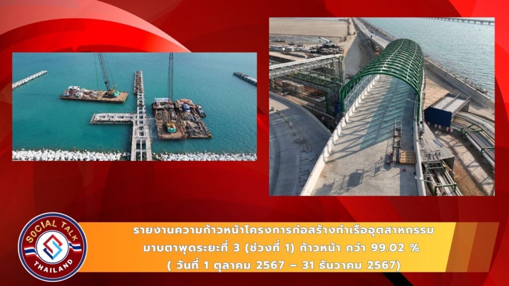 รายงานความก้าวหน้าโครงการก่อสร้างท่าเรืออุตสาหกรรมมาบตาพุดระยะที่ 3 (ช่วงที่ 1) ก้าวหน้า กว่า 99.02 % ( วันที่ 1 ตุลาคม 2567 – 31 ธันวาคม 2567)
