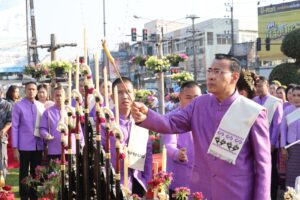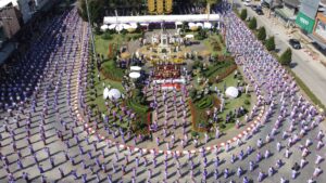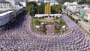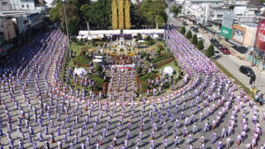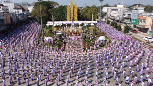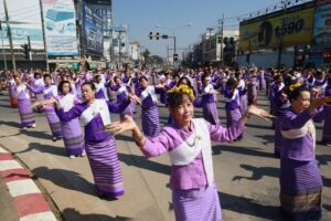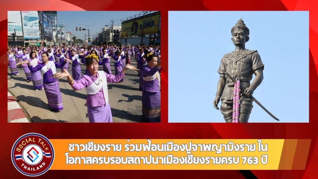 วันนี้ (26 มกราคม 2568) นางสินีนาฎ ทองสุข นายกเหล่ากาชาดจังหวัดเชียงราย ประธานแม่บ้านมหาดไทยจังหวัดเชียงราย นำชาวเชียงรายทุกหมู่เหล่า ร่วมกันฟ้อนเมืองไหว้สาปูจาพญามังราย ในวันพิธีบวงสรวง ณ บริเวณถนนรอบอนุสาวรีย์พญามังรายมหาราช (ห้าแยกพ่อขุน) โดยมีช่างฟ้อนกว่า 1,000 คน เข้าร่วมฟ้อนเมือง โดยมีแม่ครูบัวเรียว รัตนมณีภรณ์ ศิลปินแห่งชาติ สาขาศิลปะการแสดง (การแสดงพื้นบ้าน- ช่างฟ้อน) เป็นผู้ฟ้อนนำช่างฟ้อน ประกอบไปด้วย หัวหน้าส่วนราชการ เจ้าหน้าที่ ผู้แทนช่างฟ้อนทั้ง 18 อำเภอ นักเรียน นักศึกษา และชาวเชียงรายทุกหมู่เหล่า ซึ่งการฟ้อนเป็นไปด้วยความงดงาม อ่อนช้อย สวยงาม เป็นเอกลักษณ์สำหรับการจัดแสดง “ฟ้อนเมืองเชียงราย” บวงสรวงพญามังรายมหาราช ในโอกาสครบรอบสถาปนาเมืองเชียงรายครบ 763 ปี เพื่อน้อมรำลึกถึงพระมหากรุณาธิคุณและแสดงความจงรักภักดีเทิดพระเกียรติพญามังราย ผู้ทรงสถาปนาเมืองเชียงราย มีบรรยากาศภาพมุมสูงอันสวยงามเต็มพื้นที่ลานพ่อขุนเม็งรายมหาราช อันงดงาม