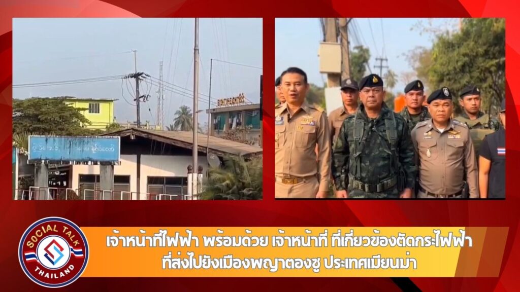 กาญจนบุรี เจ้าหน้าที่ไฟฟ้า พร้อมด้วย เจ้าหน้าที่ ที่เกี่ยวข้องตัดกระไฟฟ้า ที่ส่งไปยังเมืองพญาตองซู ประเทศเมียนม่า