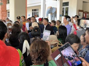 นายสีเมือง ธำมา รองประธานชุมชนห้วยปลากั้ง กล่าวว่า คนที่มารวมตัวที่หน้าศาลากลางในวันนี้ ทุกคนมาด้วยใจ ไม่มีใครบังคับให้มา ทุกคนมาเพื่อแสดงเจตนารมณ์ที่ไม่ต้องการจะย้ายเขตปกครอง จะให้ทำอย่างไรก็ยอม จะให้กราบก็ยอม เพราะเราไม่ต้องการจะไปไหนทั้งสิ้น เราอยู่ตรงนี้มานาน 30-40 ตั้งแต่ยกฐานะเป็นเทศบาลนคร บางคนก็อยู่มานานกว่านั้น และแต่ละชุมชนได้ผ่านการประชาคมใหญ่มาแล้ว 3 ครั้ง และมีมติเอกฉันท์ว่าไม่ต้องการจะย้ายไปไหนทั้งสิ้น
