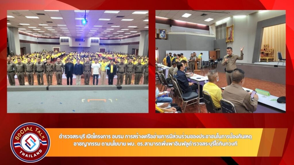 ตำรวจสระบุรี เปิดโครงการ อบรม การสร้างเครือข่ายการมีส่วนร่วมของประชาชนในการป้องกันเหตุอาชญากรรม ตามนโยบาย ผบ. ตร.สามารถพึ่งพาอินฟลูตำรวจสระบุรีได้ทันท่วงที