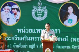 นายชรินทร์ ทองสุข ผู้ว่าราชการจังหวัดเชียงราย กล่าวว่า การออกหน่วยแพทย์เคลื่อนที่ พอ.สว. โดยคณะบุคลากรทางการแพทย์และทุกภาคส่วนที่เกี่ยวข้องในวันนี้ ถือเป็นการแสดงออกถึงความจงรักภักดีและความมุ่งมั่นตั้งใจที่จะสนองพระปณิธานในการรักษาพยาบาล การฟื้นฟูสุขภาพ การส่งเสริมสุขภาพ และการป้องกันความเจ็บป่วยให้แก่ประชาชนในถิ่นทุรกันดาร รวมถึงผู้ด้อยโอกาสและกลุ่มเปราะบางในชุมชน เพื่อให้ประชาชนในพื้นที่จังหวัดเชียงราย ได้รับการบริการด้านสุขภาพอย่างทั่วถึง อันจะส่งผลให้ประชาชนมีสุขภาพที่ดีต่อไป