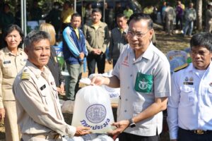 จากนั้น ผู้ว่าราชการจังหวัดเชียงราย นายกเหล่ากาชาดจังหวัด/ประธานแม่บ้านมหาดไทยจังหวัดเชียงราย และหัวหน้าส่วนราชการ ได้มอบถุงยังชีพจากสำนักงานเหล่ากาชาดจังหวัดเชียงราย ,ข้าวสารจากวัดห้วยปลากั้ง,ผ้าห่มกันหนาวจากสำนักงานป้องกันและบรรเทาสาธารณภัยจังหวัดเชียงราย, และมอบเงินสงเคราะห์ ครอบครัวผู้มีรายได้น้อย จำนวน 20 ราย จากสำนักงานพัฒนาสังคมและความมั่นคงของมนุษย์จังหวัดเชียงราย
