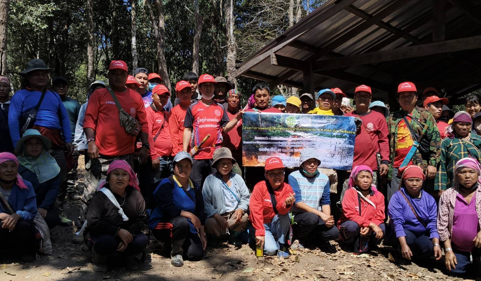 เมื่อวันที่ 19 กุมภาพันธ์ 2568 นายดีมา ดำรงค์ชัยวิชิต ผู้ใหญ่บ้านหมู่ที่ 16 บ้านห้วยน้ำขุ่น ต.ท่าก๊อ อ.แม่สรวย จ.เชียงราย ได้นำลูกบ้านประมาณ 100 คน เดินทางพร้อมด้วยอุปกรณ์และเครื่องมือเครื่องเป่าลมแรงดันสูง เครื่องตัดหญ้า เป็นต้น ได้เดินทางเข้าป่าชุมชนในพื้นที่ใกล้เคียงเพื่อทำแนวกันไฟในการป้องกันไฟป่า