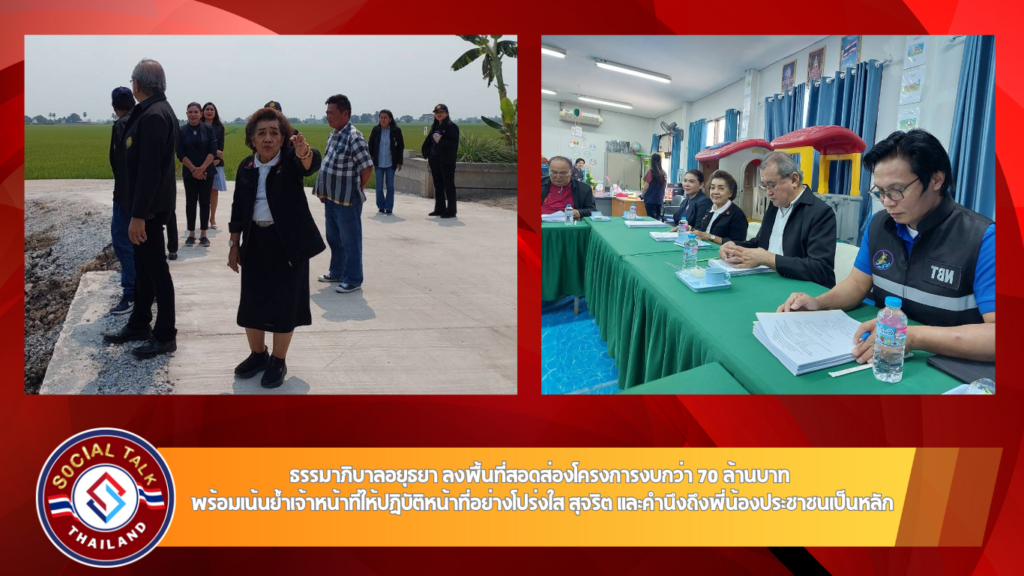 เมื่อวันที่ (20 ก.พ.68) คณะกรรมการธรรมาภิบาลจังหวัดพระนครศรีอยุธยา ยังคงเดินหน้าลงพื้นที่ติดตามสอดส่องโครงการตามแผนปฏิบัติราชการกลุ่มจังหวัดภาคกลางตอนบน และงบประมาณเงินอุดหนุนที่ อปท.ได้รับ รวม 14 โครงการ กว่า 70 ล้านบาท