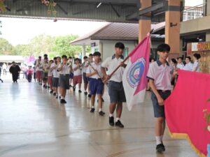 พิธีเริ่มขึ้นตั้งแต่เช้า โดยมีขบวนนักเรียนเดินเข้าสู่หอประชุม นำโดยวงโยธวาทิตของโรงเรียน ท่ามกลางบรรยากาศที่เต็มไปด้วยความภาคภูมิใจของนักเรียน ครู และผู้ปกครอง