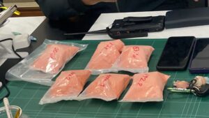 เมื่อเวลา 16.30 น.วันที่ 3 มี.ค.2568 พ.ต.อ.อดิเรก ทองแกมแก้ว ผกก.สภ.บางแก้ว พ.ต.ท.ชาญวุฒิ เทียมมงคล รอง ผกก.สส.สภ.บางแก้ว พ.ต.ท.วสันต์ วงศ์เรือง สว.สส.สภ.บางแก้ว พ.ต.ต.ดนัย แก้วน่าน สว.สส.สภ.บางแก้ว ชุดสืบสวน สภ.บางแก้ว ร่วมกันจับกุมตัว นายพงศกร อายุ 35 ปี จ.สมุทรปราการ นายพงษ์พัฒน์ จ.สมุทรปราการ พร้อมของกลาง รถจักรยานยนต์ยี่ห้อฮอนด้า รุ่นเวฟ110ไอ สีดำ-แดง ไม่ติดแผ่นป้ายทะเบียน เสื้อ กางเกง ที่ใส่ในวันก่อเหตุ ได้ร่วมกันตะเวนก่อเหตุงัดตู้หยอดเหรียญในหลายพื้นที่ในจังหวัดสมุทรปราการ จากการตรวจค้นภายในบ้าน พบยาบ้า จำนวน 1,091 กรัม ที่ซุกซ่อนอยู่ข้างตู้ลำโพง ภายในห้องโถงภายในบ้าน สามารถจับกุมตัวได้ที่ บ้านพักใน ต.บางแก้ว อ.บางพลี จ.สมุทรปราการ เจ้าหน้าที่จึงแจ้งข้อกล่าวหา โดยกล่าวหาว่า ร่วมกัน ร่วมกันลักทรัพย์ในเวลากลางคืน โดยทำอันตรายสิ่งกีดกั้นสำหรับคุ้มครองบุคคลหรือทรัพย์ หรือโดยผ่านสิ่งเช่นว่านั้นเข้าไปด้วยประการใด ๆ โดยใช้ยานพาหนะเพื่อสะดวกแก่การกระทำผิดหรือพาทรัพย์นั้นไปหรือเพื่อให้พ้นการจับกุม และร่วมกัน มียาเสพติดให้โทษประเภท1(เมทแอมเฟตามีน) ไว้ในครอบครองโดยไม่ได้รับอนุญาต โดยมีไว้เพื่อจำหน่ายอันเป็นการกระทำเพื่อการค้า และเป็นการก่อให้เกิดการแพร่กระจายในกลุ่มประชาชน และ 2.เสพยาเสพติดให้โทษประเภท 1 (ยาบ้า) โดยผิดกฎหมาย