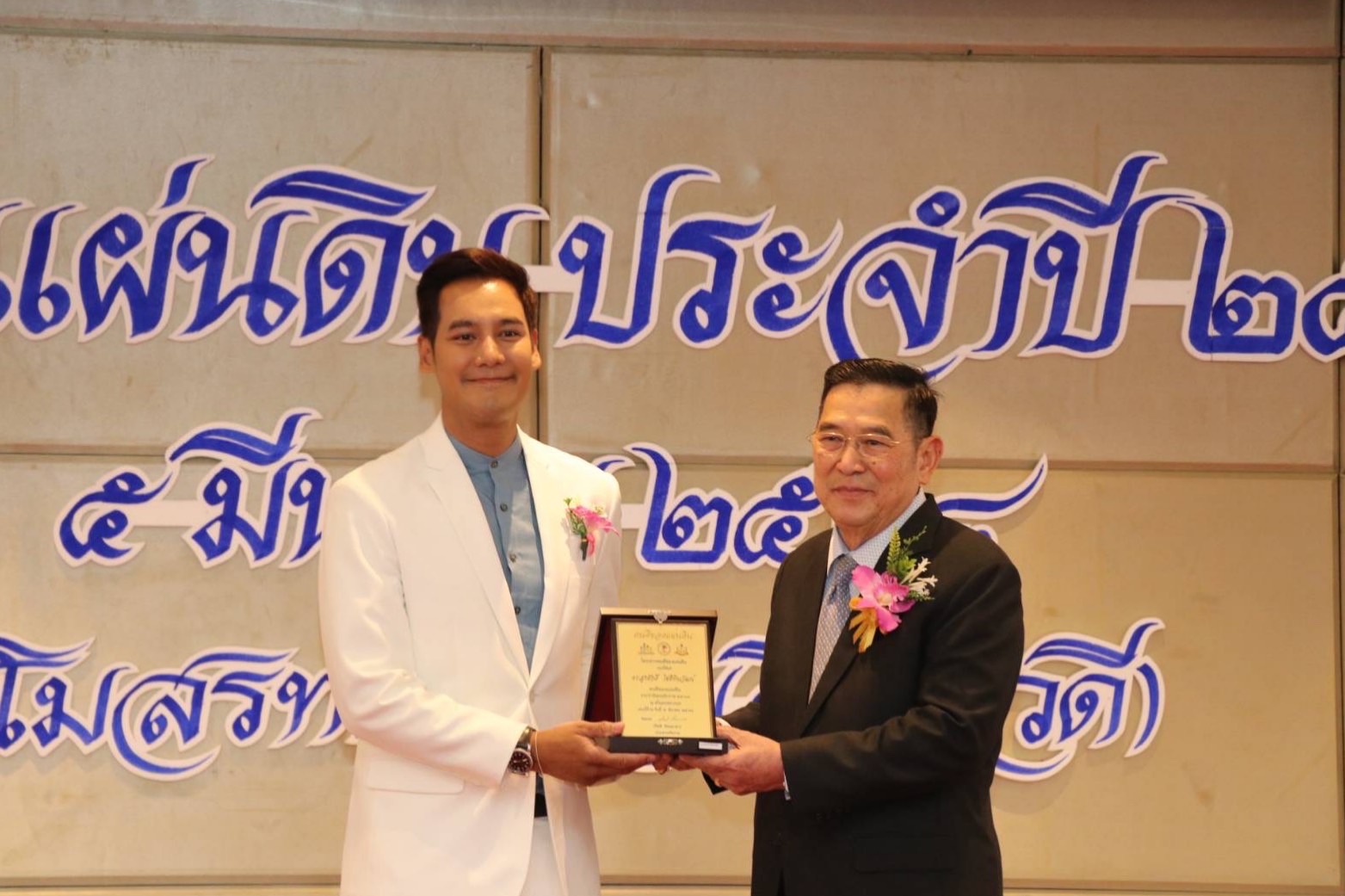 พลเอกอรรฐพร โบว์สุวรรณ และ หนุ่มโอ๊ด ดร.สุรศักดิ์ โชติทินวัฒน์ พระเอกหนุ่มรับโล่ประกาศกิตติคุณ “คนดีของแผ่นดิน