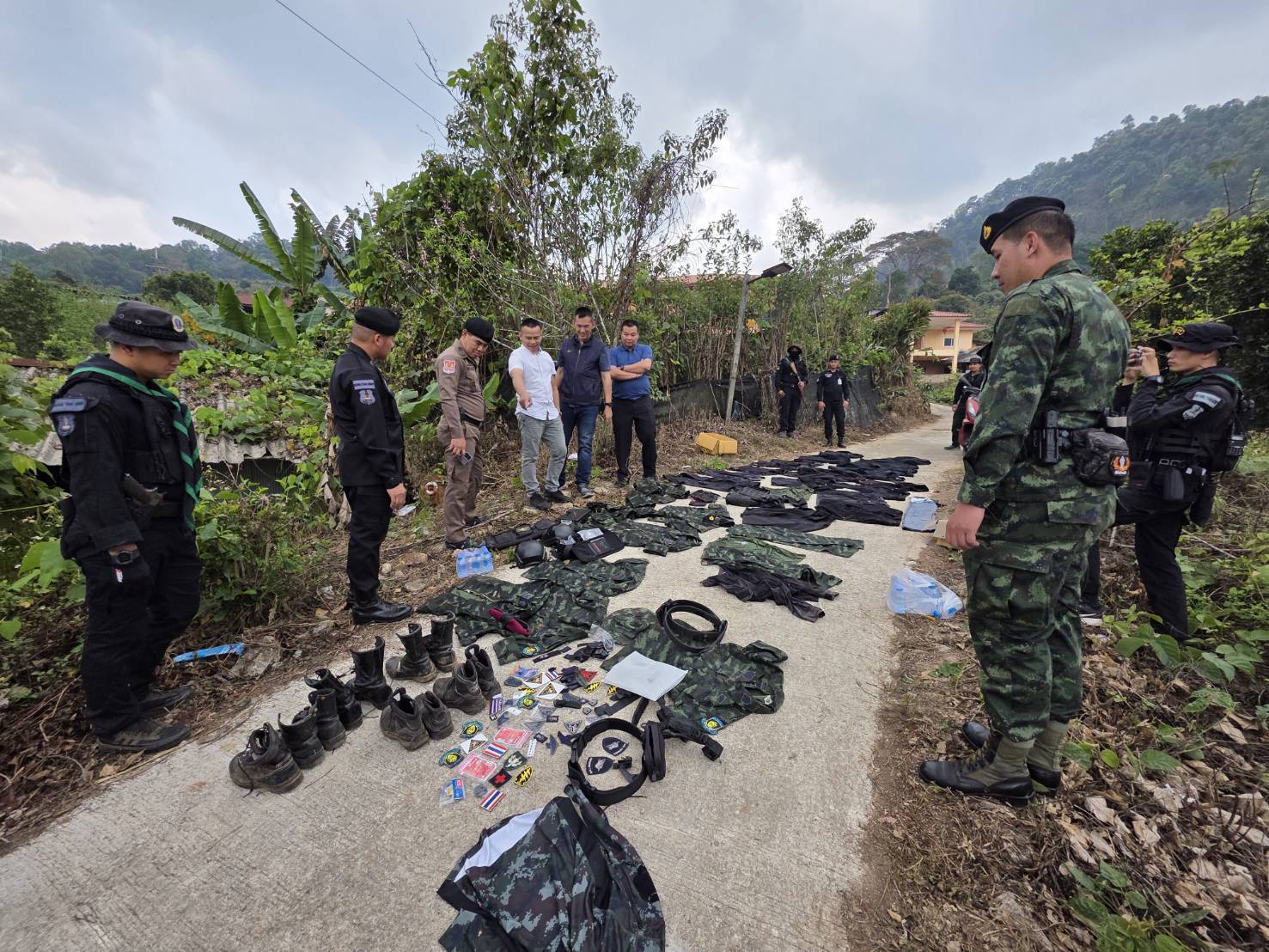 จากการขยายผลทราบว่ามีคนในเครือข่ายขับรถลงเขาไปจึงสกัดได้หน้าจุดตรวจสามแยกอีก้อ ต.แม่สลองใน อ.แม่ฟ้าหลวง ก็สามารถสกัดรถคันดังกล่าวเอาไว้ได้ 1 คัน โดยเป็นกระบะยี่ห้อโตโยต้า ภายในมีชายจำนวน 4 คน จึงได้จับกุมตัวเอาไว้ทั้งหมด รวมผู้ต้องสงสัยจำนวน 7 คน เจ้าหน้าที่ยังได้ขยายผลเข้าตรวจสอบโกดังแห่งหนึ่งพบของกลางเพิ่มเติมเปืน AK พร้อมเครื่องกระสุน ปืนลูกซองสั้น 9 มม.ะลูกระเบิดขว้างสังหารอีกจำนวนหนึ่ง จึงประสานตำรวจEOD เข้าไปตรวจสอบแล้ว.