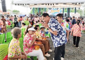 จากนั้น พล.ต.ท.คำรณวิทย์ ธูปกระจ่าง ได้ทำการสรงน้ำพระก่อนที่จะพบปะประชาชนและผู้สูงอายุที่มาร่วมงาน อีกทั้ง นายกิตติเดช ลานทอง นายกเทศมนตรี ต.ลำลูกกา ยังร่วมรดน้ำดำหัวผู้สูงอายุและมอบผ้าไหมไทยให้อีกด้วย