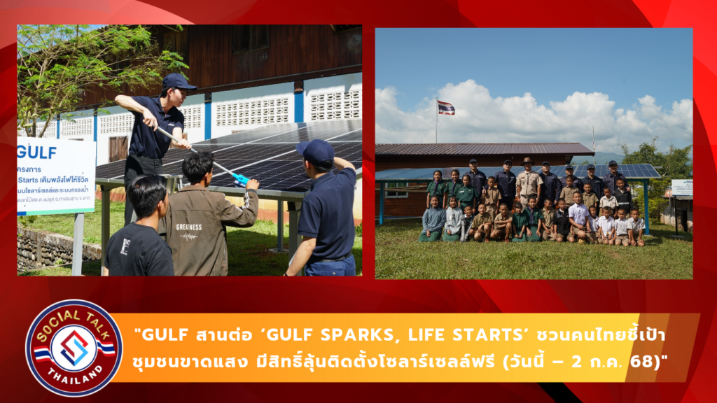 “GULF สานต่อ ‘GULF Sparks, Life Starts’ ชวนคนไทยชี้เป้าชุมชนขาดแสง มีสิทธิ์ลุ้นติดตั้งโซลาร์เซลล์ฟรี (วันนี้ – 2 ก.ค. 68)”
