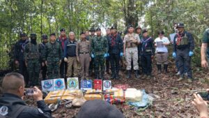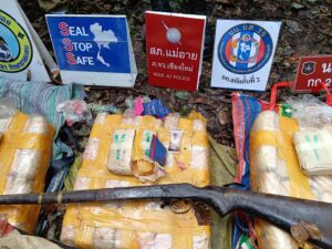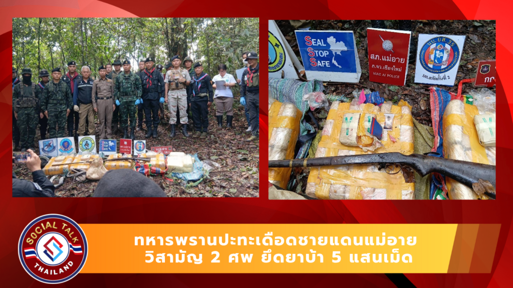 ในช่วงบ่ายวันเดียวกัน พลตรีกิดากร จันทรา ผู้บัญชาการกองกำลังผาเมือง และผู้อำนวยการศูนย์ปฏิบัติการป้องกันและปราบปรามยาเสพติดกองกำลังผาเมือง ได้มอบหมายให้ พันเอกไมตรี ศรีสันเทียะ เสนาธิการกองกำลังผาเมือง เป็นผู้แทนร่วมกับหน่วยงานที่เกี่ยวข้องลงพื้นที่ตรวจสอบของกลาง พร้อมนำส่งให้กับสถานีตำรวจภูธรแม่อาย เพื่อดำเนินการตามขั้นตอนของกฎหมายต่อไป…