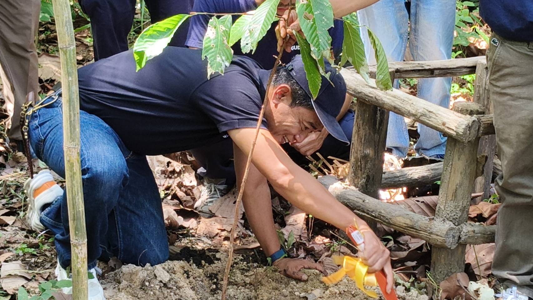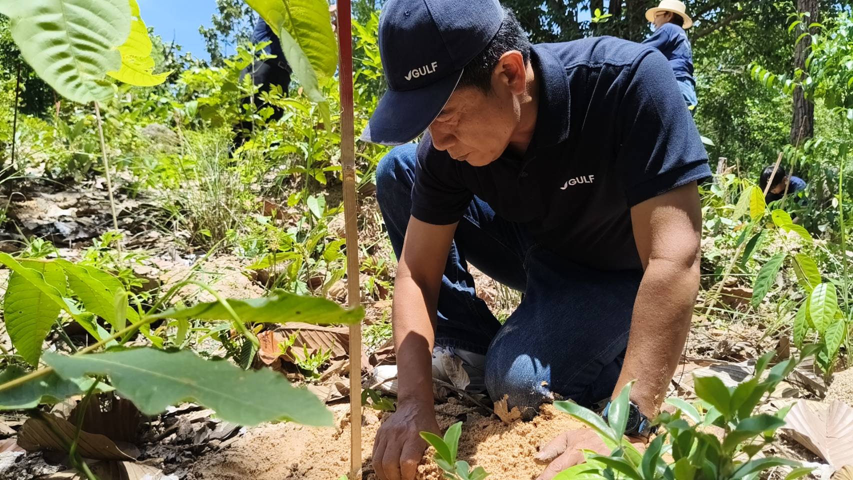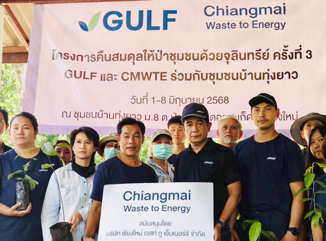 นายจิรศักดิ์ มีสัตย์ ผู้บริหาร กลุ่มบริษัทกัลฟ์ (Gulf) โครงการ คืนสมดุลให้ป่าชุมชนด้วยจุลินทรีย์ ตั้งแต่ปี 2566 โดยเข้ามาส่งเสริมกระบวนการเรียนรู้ด้านฐานชีวภาพ ซึ่งเป็นกลไกสำคัญในการพัฒนาป่าไม้และระบบนิเวศน์ โดยเริ่มต้นจาก อบรมองค์ความรู้เกี่ยวกับระบบนิเวศน์สิ่งแวดล้อม และจุลินทรีย์ ส่งเสริมการจัดตั้งศูนย์เรียนรู้และธนาคารจุลินทรีย์ชุมชน ซึ่งจะนำมาใช้นระบบการฟื้นฟูป่าไม้และการเกษตรและเศรษฐกิจรายได้ของ และได้ร่วมกับชุมชนในกิจกรรมป้องกันไฟป่า และในช่วงวันที่ 1 มิถุนายน 2568 ผ่านมา ได้นำผู้นำชุมชนและคณะกรรมการอนุรักษ์ป่าชุมชน ไปอบรมที่ มูลนิธิเห็ดไมคอร์ไรซ่าฯ นักวิจัยจาก มหาวิทยาลัยแม่โจ้แพร่ เรียนรู้วิธีการขยายเชื้อเห็ดไมคอร์ไรซ่า นำมาใส่ในต้นกล้าไม้เพื่อเพิ่มศักยภาพในการเติบโตป้องกันโรค ทนทานต่อสิ่งแวดล้อม ฯลฯ และมีเห็ดให้เราเก็บกินได้ และไม้แข็งแรงโตเร็วกว่าปกติ เป็นงานวิจัยที่ประสบผลสำเร็จและชุมชนสามารถทำได้สำเร็จจำนวนมากแล้ว ทางชุมชนของเราได้ไปศึกษาดูงานมาแล้ว สำหรับวันนี้ เป็นขั้นตอนการปฏิบัติการที่บริษัทฯสนับสนุนเชื้อเห็ดเผาะ เห็ดตับเต่าและอื่นๆ ซึ่งเป็นเชื้อไมคอร์ไรซ่า และพันธุ์กล้าไม้ที่ใส่เชื้อเห็ดมาปลูกเป็นแปลงทดลอง แปลงนำร่องเพื่อขยายผลสู่ชุมชนและป่าไม้ของเราให้เกิดความอุดมสมบูรณ์ต่อไป และจะมีโอกาสขยายเป็นกิจกรรมพัฒนารายได้ อาชีพ และเศรษฐกิจชุมชนได้ในหลายผลิตภัณฑ์ในอนาคต โดยบริษัทฯจะมีนักส่งเสริม นักวิชาการ และสร้างความร่วมมือของหน่วยงานต่างๆมาร่วมกันเพื่อสร้างพลังแห่งการอนุกร์ฟื้นฟูและพัฒนาป่าไม้ชุมชนของเราทุกคนให้อุดมสมบูรณ์คู่กับวิถีชีวิตของชุมชนอย่างยั่งยืนต่อไป บริษัทฯให้ความสำคัญยิ่งต่อชุมชน และจะเป็นส่วนหนึ่งที่ร่วมสนับสนุนชุมชนต่อไป