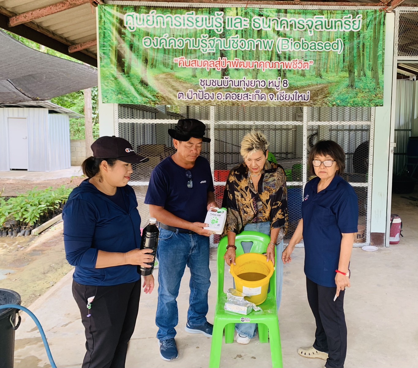 แล้ว ทั้งนี้ เพื่อการพัฒนาองค์กรชุมชนที่เป็นระบบ เป็นทางการ และมีประสิทธิภาพด้านธุรกิจชุมชนมากยิ่งขึ้น ในการใช้ฐานทรัพยากรชุมชนเพื่อต่อยอดเป็นรายได้แก่ชาวชุมชนด้วย ในการพัฒนานิเวศสิ่งแวดล้อม และ เศรษฐกิจชุมชนควบคู่กันตามแนวทางพัฒนาที่ยั่งยืน หรือ บิซิเนส โมเดล ( “(Business Model) ซึ่งชุมชนได้ดำเนินงานและเตรียมความพร้อมมาแล้วกว่า 2 ปี และมีความก้าวหน้าในระดับหนึ่ง ได้แก่ มีการก่อตั้งศูนย์เรียนรู้และธนาคารจุลินทรีย์ชุมชน กำลังดำเนินการผลิตเกี่ยวกับ หัวเชื้อจุลินทรีย์เพื่อการฟื้นฟูป่าชุมชนและใช้ในการเกษตรและครัวเรือน เช่น การผลิตหัวเชื้อราไมคอร์ไรซ่า ในการเพาะพันธุ์กล้าไม้ป่า เพื่อฟื้นฟูป่าชุมชนและเป็นผลิตภัณฑ์จำหน่ายทั่วไป ผลิตหัวเชื้อไมคอร์ไรซ่า และกล้าไม้ป่าที่ใส่เชื้อไมคอร์ไรซ่า และ กำลังดำเนินการผลิตสินค้าชุมชนด้านอินทรีย์ชีวภาพ ใช้ในการเกษตรและครัวเรือน เช่น หัวเชื้อจุลินทรีย์ ปุ๋ย ฮอร์โมนเพื่อการเจริญเติบโตของพืช จุลินทรีย์บอล ใช้ในการบำบัดน้ำเสียและก้อนปุ๋ยผสมสารอาหารพืช ทำน้ำยาล้างจาน นำยาซักผ้าเครื่อง แชมพู น้ำยาถูพื้น เป็นต้น และจะพัฒนาสินค้าชุมชนจากฐานทรัพยากรชุมชน เช่นปู๋ยหมัก สารปรับปรุงดินจากเสษไม้ในป่านำมาเผาถ่านไบโอชา มีธาตุอาหาร สารซิลิก้า ฯลฯ