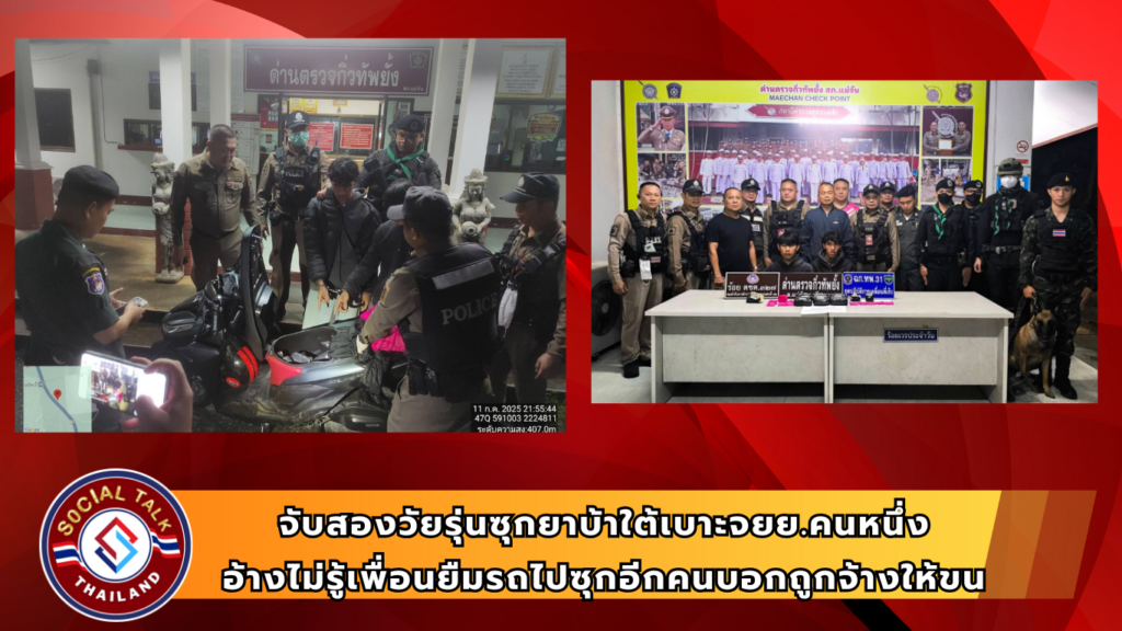 สวป.,พ.ต.ต.ศักดิ์ชาย รีอินทร์ สวป.(ชส.) มอบหมายให้เจ้าหน้าที่ควบคุมตัวนายสมบูรณ์ อายุ 19 ปี ชาว ต.เวียงพางคำ อ.แม่สาย จ.เชียงราย และนายไก่ (นามสมมุติ) อายุ 16 ปี ชาว ต.โป่งงาม อ.แม่สาย พร้อมของกลางยาเสพติดเพื่อดำเนินคดีตามกฎหมาย