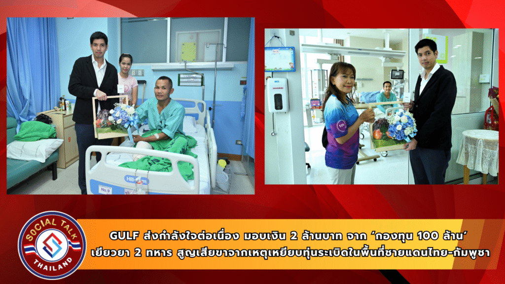 นายสิตมน รัตนาวะดี ผู้ช่วยรองประธานเจ้าหน้าที่บริหาร บริษัท กัลฟ์ ดีเวลลอปเมนท์ จำกัด (มหาชน) กล่าวว่า “เมื่อเดือนกรกฎาคมที่ผ่านมา GULF ได้ทราบข่าวทหารที่ได้รับบาดเจ็บและสูญเสียขาจากเหตุเหยียบทุ่นระเบิดที่ช่องบก จังหวัดอุบลราชธานี ทางเราจึงรีบเข้าไปให้ความช่วยเหลือในทันที และเมื่อเราเห็นว่ายังมีทหารอีกหลายนายที่ยังคงได้รับบาดเจ็บจากการปฏิบัติภารกิจอย่างต่อเนื่อง GULF จึงสานต่อภารกิจแห่งการให้ในวันนี้ โดยใช้เงินจาก ‘กองทุน 100 ล้านบาท’ ที่ทางบริษัทฯ จัดตั้งขึ้นเพื่อเยียวยาและช่วยเหลือทหารจากเหตุการณ์นี้โดยเฉพาะ ในฐานะคนไทย ผมขอขอบคุณและยกย่องในความกล้าหาญและความทุ่มเทของทหารแนวหน้าทุกนาย ขอเป็นกำลังใจให้ทุกท่านมีพลังกายพลังใจที่เข้มแข็ง และฟื้นตัวจากอาการบาดเจ็บโดยเร็วครับ”