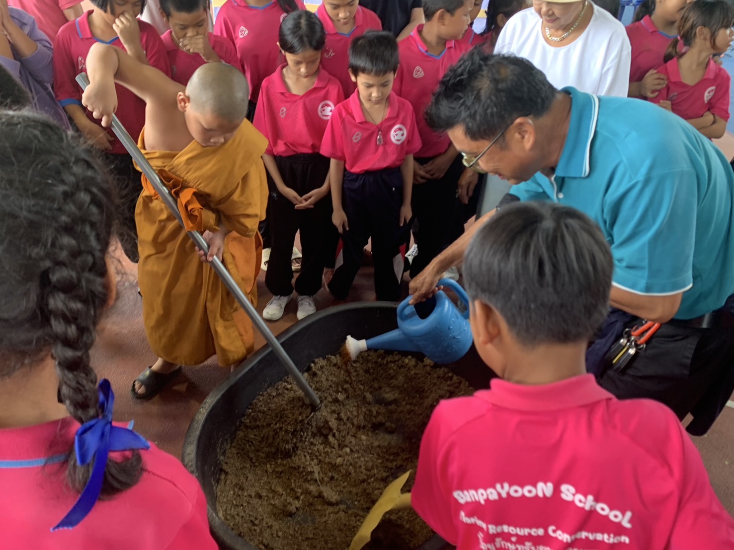 สำหรับกิจกรรมวันนี้ การอบรมเชิงปฺฏิบัติการ แก่ครูและนักเรียน โดยนำความรู้เกี่ยวกับจุลินทรีย์ชีวภาพ ได้แก่ 1) จุลินทรีย์ จุลินทรีย์น้ำข้าว จุลินทรีย์อีเอ็ม กลุ่มย่อยสลาย และกำจัดกลิ่นเน่าเหม็น และ จุลินทรีย์ผสมผสาน เป็นต้น และเทคนิควิธีการนำไปใช้สำหรับพัฒนา สิ่งแวดล้อมภายในโรงเรียน สุขอนามัย โดยเฉพาะ ห้องน้ำ ห้องครัว โรงอาหาร ท่อระบายน้ำ อื่นๆ ที่อาจเป็นแหล่งก่อมลภาวะ กลิ่นเหม็นและกำจัดเชื้อโรคแบคทีเรียเป็นต้น 2) จุลินทรีย์สำหรับด้านการเกษตรและสิ่งแวดล้อม