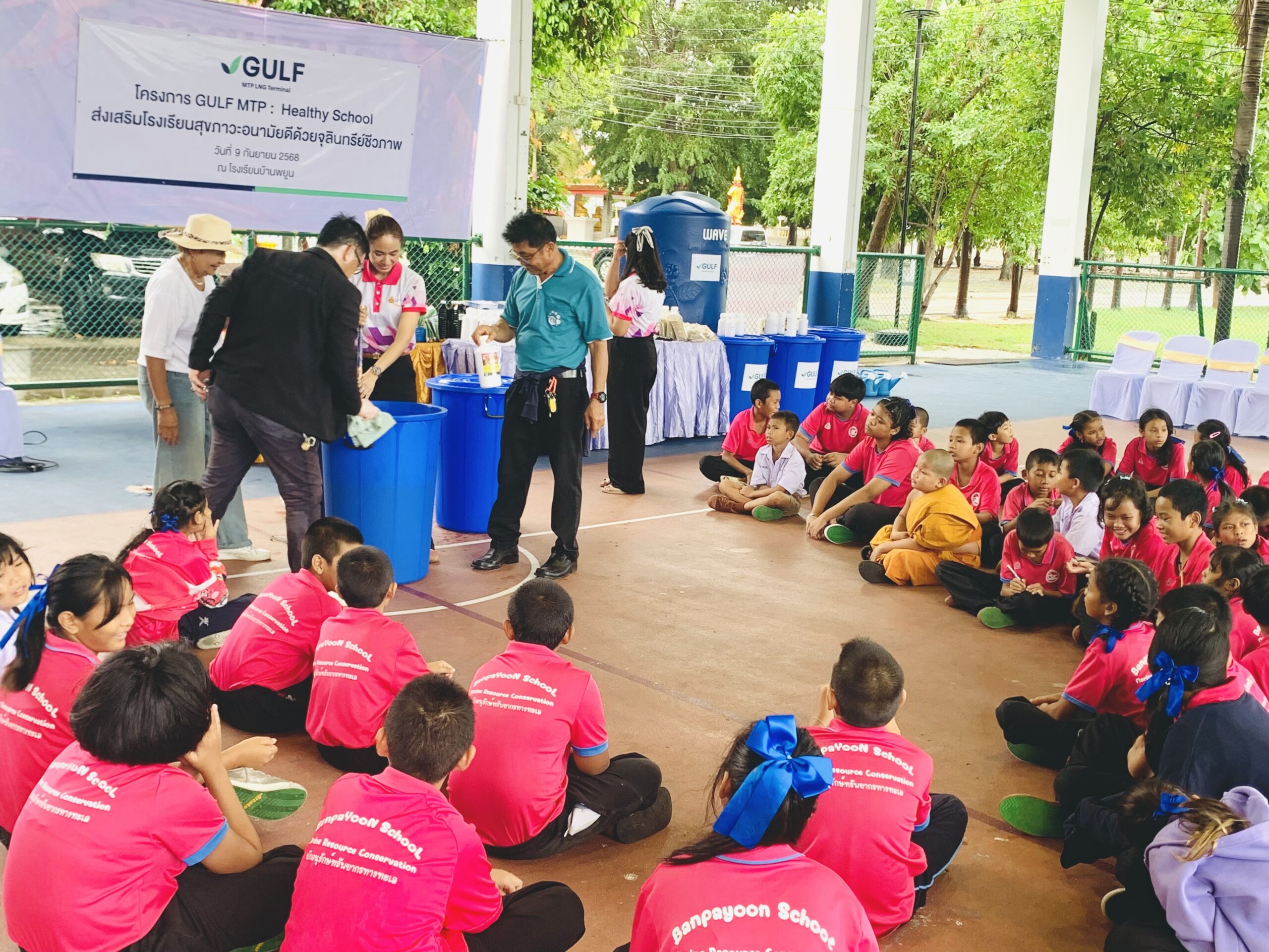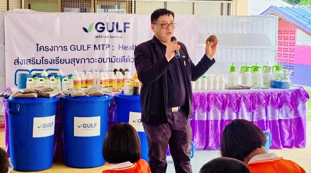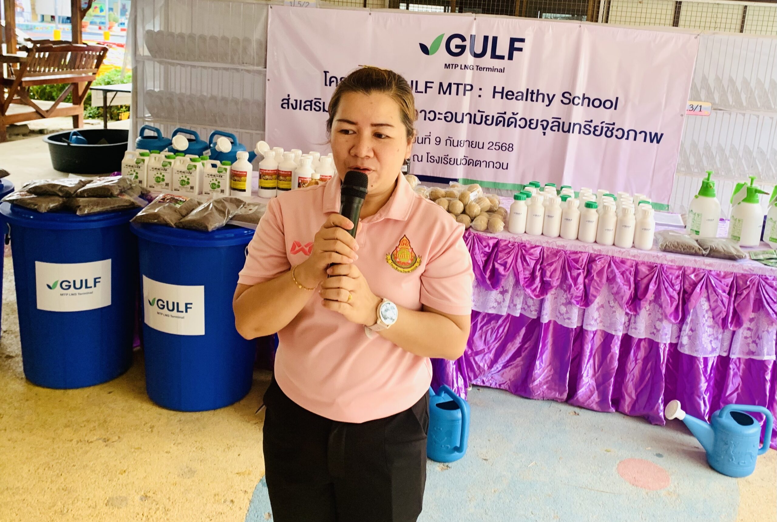 วันที่ 9 กันยายน 2568 บริษัทกัลฟ์ เอ็มทีพี แอลเอ็นจี เทอร์มินอล จำกัด (GULF MTP ) โครงการท่าเทียบเรือขนถ่ายก๊าซธรรมชาติและโครงการสถานีเก็บรักษาและแปรสภาพก๊าซธรรมชาติ นพื้นที่ท่าเรืออุตสาหกรรมมาบตาพุด ระยะที่ 3 นิคมอุตสาหกรรมมาบตาพุด ฯ โดย นายศุภฤกษณ์ โสภณราพงษ์ ผช.ผจก.ฝ่ายชุมชนสัมพันธ์ และ ดร.กฤษณ์ พงษ์เทพิน ผช.ผอ.ฝ่ายชุมชนสัมพันธ์ (GULF MTP ) วิทยากรโครงการฯ และ อาจารย์ศุภกร พิศาลธนารักษ์ วิทยากรจาก ศูนย์สหวิชชาชีพพึ่งตนเอง จ.พระนครศรีอยุธยา และ มูลนิธิเกษตรธรรมชาติและสิ่งแวดล้อม จัดโครงการร่วมกับ โรงเรียนบ้านพยูน อ.บ้านฉาง จ.ระยอง นำโดย นางสาวปัทมา เชื้อรอด ผู้อำนวยการโรงเรียนบ้านพยูน มอบหมายให้ ครูพลอยผกา บุญโชติชนิต ตำแหน่ง ครูชำนาญการพิเศษโรงเรียนบ้านพยูน เป็นตัวแทนเปิดการอบรมฯและ ร่วมกิจกรรม โรงเรียนวัดตากวน ตำบลมาบตาพุด อ.เมืองระยอง จ.ระยอง นำโดย นางสาวรุ่งนภา คำต่อ ผู้อำนวยการโรงเรียนวัดตากวน มอบหมายให้ นางวรีลักษณ์ โพธิน ตำแหน่งครูชำนาญการ โรงเรียนวัดตากวน เป็นตัวแทนเปิดการอบรมฯและร่วมจัดกิจกรรม โดยมีนักเรียนเข้าร่วม2 แห่ง รวมกว่า 150 คน นอกจากนี้ยังได้รับเกียรติจาก นายประชุม วงษ์ศรยา รองประธานชุมชนตากวน-อ่าวประดู่ มาบตาพุด จ.ระยอง กล่าวให้โอวาทแก่นักเรียนและเข้าร่วมกิจกรรม พร้อมด้วยพนักงาน บริษัท GULF MTP และ สื่อมวลชน จ.ระยองเข้าร่วมจำนวนมาก