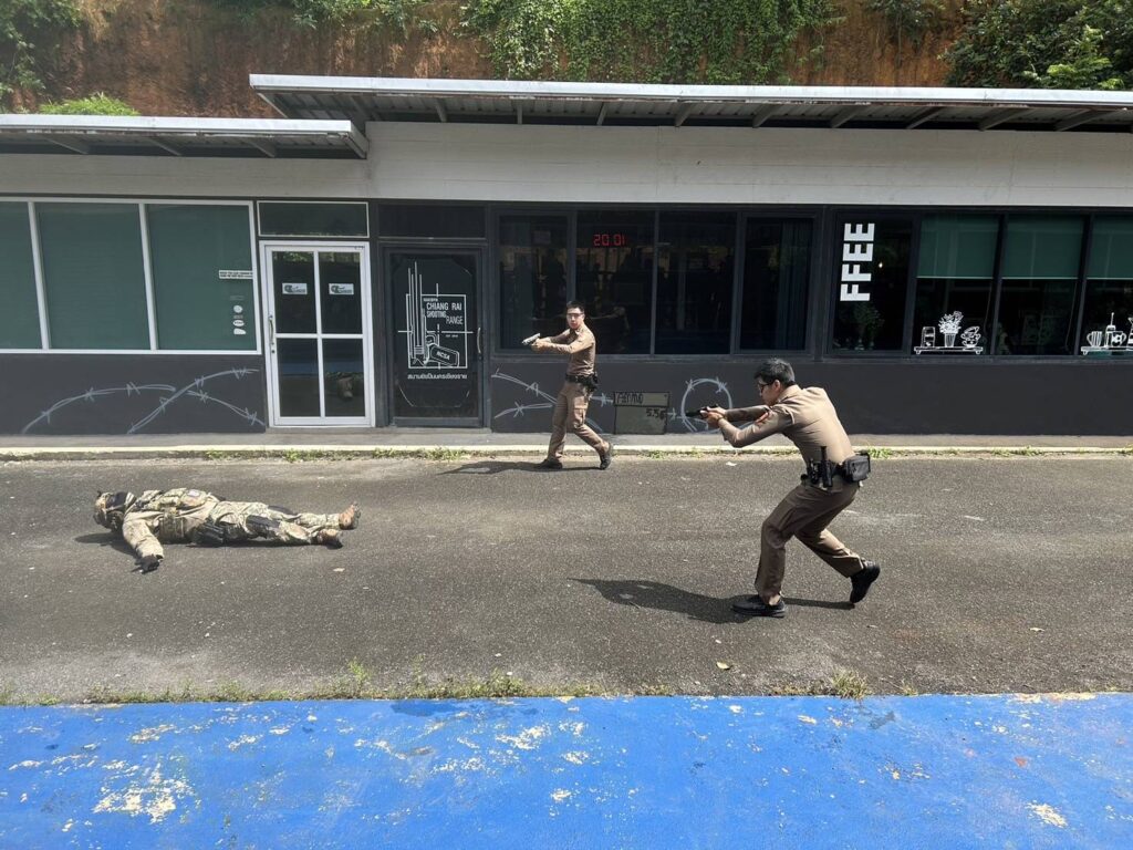 -ทำการฝึกซ้อมท่าทางดรายไฟ combat handgun แต่ละสถานี