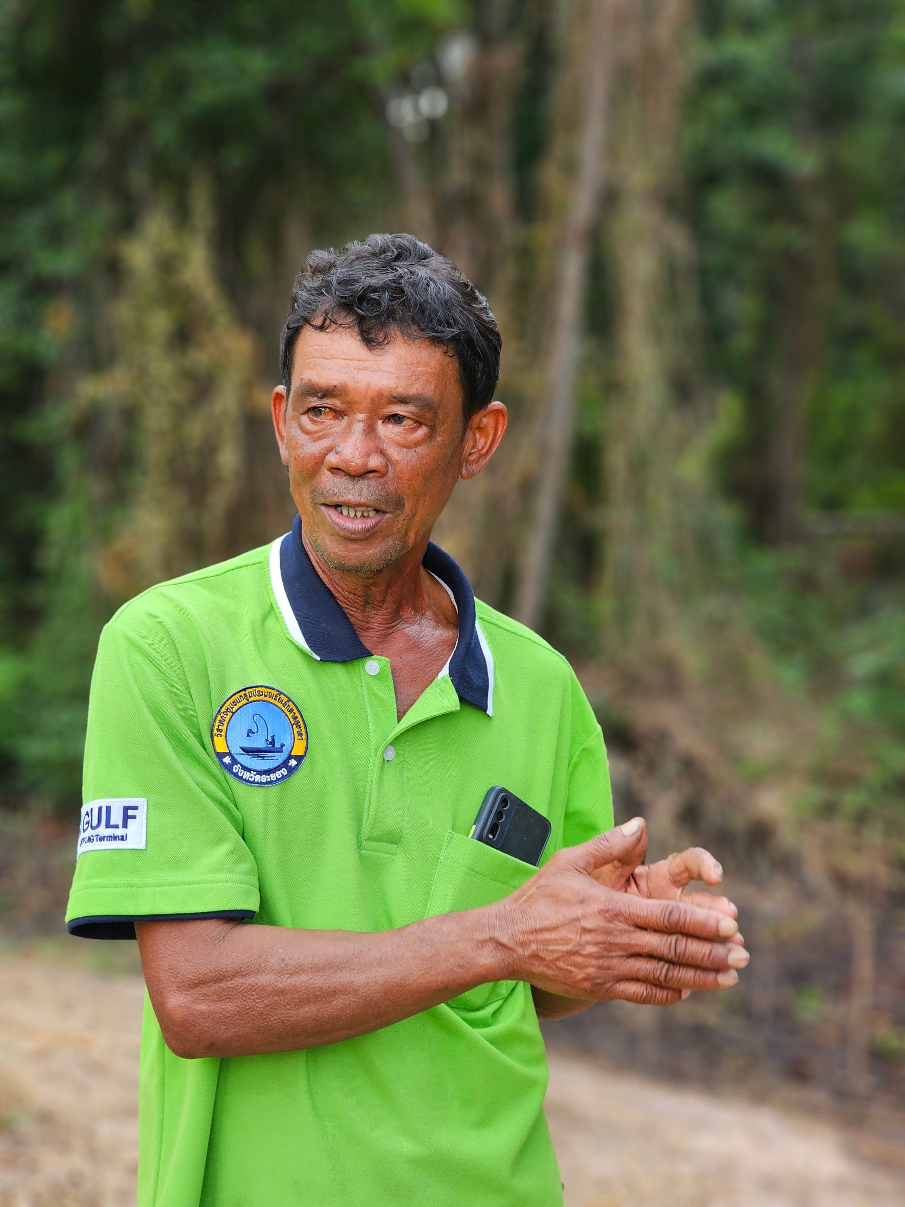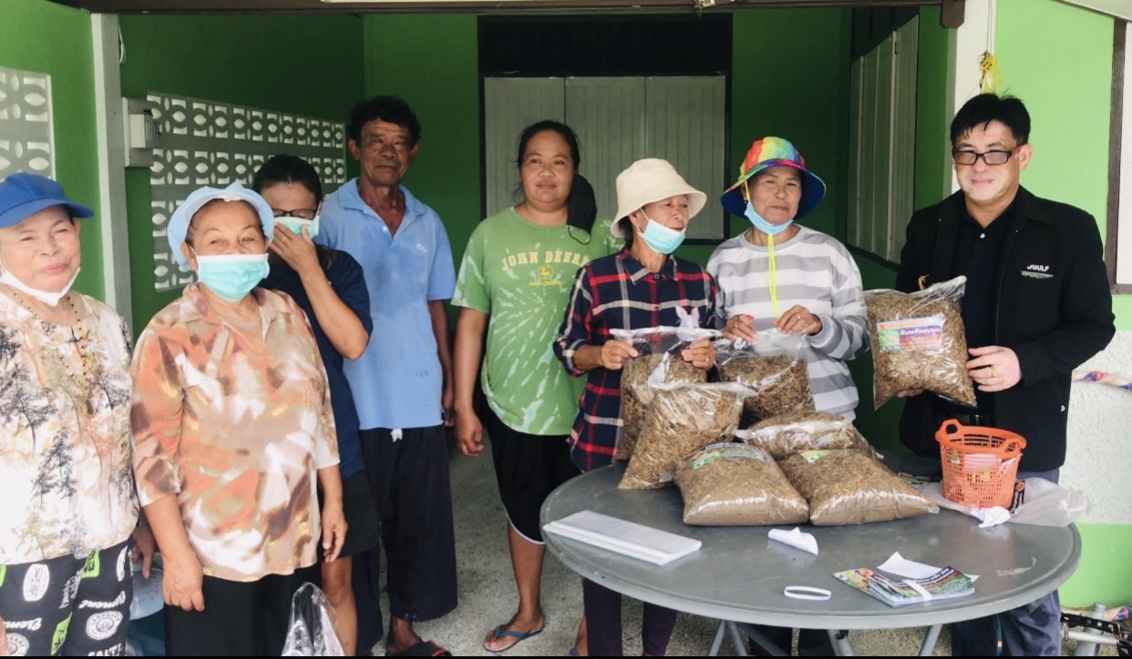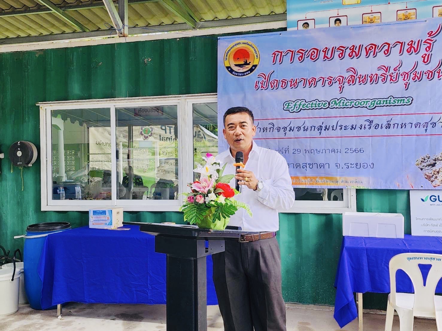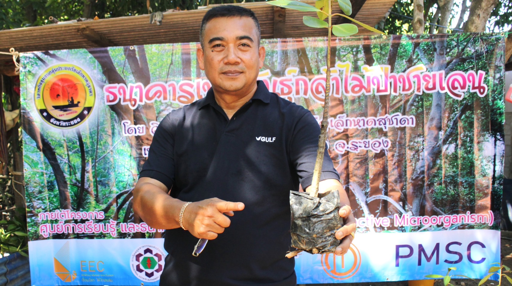 ดร.กฤษณ์ พงษ์เทพิน (GULF) กล่าวว่า ย้อนกลับไปตั้งแต่ริเริ่มโครงการฯ GULF มีนโยบายด้านCSR ที่ให้ความสำคัญอย่างยิ่งและมอบหมายให้ดำเนินงานมีส่วนร่วมกับชุมชน หน่วยงานท้องถิ่น เพื่อการอนุรักษ์ฟื้นฟูทรัพยากรธรรมชาติและสิ่งแวดล้อมชุมชน จึงได้ลงพื้นที่ศึกษาและจัดโครงการนี้ ตั้งแต่ปี 2564 ถึงปัจจุบัน ได้พัฒนาความร่วมมือกับ วิสาหกิจชุมชนกลุ่มประมงเรือเล็กหาดสุชาดา ฯ สำนักงานท่าเรืออุตสาหกรรมมาบตาพุด (สทร.) เทศบาลเมืองเนินพระ ฯ และ หน่วยงานภาครัฐหลายหน่วยงาน ซึ่งได้ดำเนินการมากว่า 3 ปี สามารถพัฒนาพื้นที่เสื่อมโทรมและไม่มีต้นไม้ป่าชายเลนขึ้นเลยในช่วงแรก เราได้ใช้ “จุลินทรีย์ “ Effective Microorganism และ Photosynthetic bacteria และอื่นๆ เข้ามาช่วยในโครงการฯ เพื่อปรับปรุงสภาพดินน้ำด้วย ช่วยปรับสภาพน้ำ ดิน ย่อยสลายอินทรีย์วัตถุ เสริมสร้างธาตุอาหาร และ ปลูกต้นกล้าป่าชายเลน รวมกว่า 2,000 ต้น และได้นำจุลินทรีย์ก้อนนำ (ซึ่งปัจจุบันอบรมให้ชุมชนสามารถผลิตได้เองแล้ว) นำไปโยนและฝังลงบริเวณโคนต้นรากต้นกล้าไม้ที่ปลูกเพิ่มในป่าชายเลน เพื่อเสริมศักยภาพในกระบวนการย่อยสลายอินทรีย์วัตถุ สร้าง อะมิโนและแร่ธาตุที่จำเป็นต่อการเจริญเติบโตของพืชกล้าไม้ และ เพิ่มจุลินทรีย์ในดินโคลน เพิ่มความแข็งแรงของรากต้นไม้ ฯลฯ ถึงปัจจุบัน ต้นกล้าไม้ที่ปลูกจากความสูงประมาณ 50 เศนติเมตร เติบโตและสูงขึ้นเฉลี่ย กว่า 2 เมตร เติบโตแตกกิ่งก้าน ลำต้นขยาย แทงรากแข็งแรงค้ำลำต้น และ มีอัตตราการรอดสูงมาก (กว่า 80-90 %) และ เป็นผลงานที่น่าพอใจในระดับหนึ่ง ทั้งนี้เพราะจากปกติทั่วไปการปลูกป่าชายเลนส่วนใหญ่มักจะมีอัตราการตายสูงและเหลือรอดน้อยมาก อัตราการเจริญเติบโตไม่ดีเท่าที่ควร อาจเป็นเพราะสภาพแวดล้อมป่าชายเลนมีข้อจำกัดค่อนข้างมาก เช่น สภาพน้ำเค็มน้ำกร่อย การขึ้นลงของน้ำที่ไม่สม่ำเสมอ ปริมาณธาตุอาหารในดินน้อย และอาจมีสารปนเปื้อนในน้ำ สภาพดินโคลนแน่นขาดออกซิเจนมีสภาพเป็นกรด ฯลฯ อีกประการคือ การปลูกแล้วขาดการติดตามดูแลอย่างต่อเนื่อง เมื่อต้นหญ้าและเถาวัลย์เปรียงในป่าชายเลน (วัชพืช) ปกคลุมต้นกล้าไม่สามารถสังเคราะห์แสง ดูดซับธาตุอาหารได้เพียงพอและเถาวัลย์เปรียงเลื้อยมาผูกรัดแย่งอาหารจนต้นกล้าที่ปลูกตายในที่สุด แต่การส่งเสริมในครั้งนี้ เรามีคณะกรรมการวิสาหกิจชุมชนกลุ่มประมงเรือเล็กหาดสุชาดาได้มีบทบาทสำคัญในการติดตามดูแล เติมจุลินทรีย์ ธาตุอาหาร ตัดหญ้า รือถอนตัดเถาวัลย์เปรียง อื่นๆ เป็นการเสริมประสิทธิภาพได้มากยิ่งขึ้นส่งผลต่อแปลงปลูกกล้าไม้เติบโตได้พ