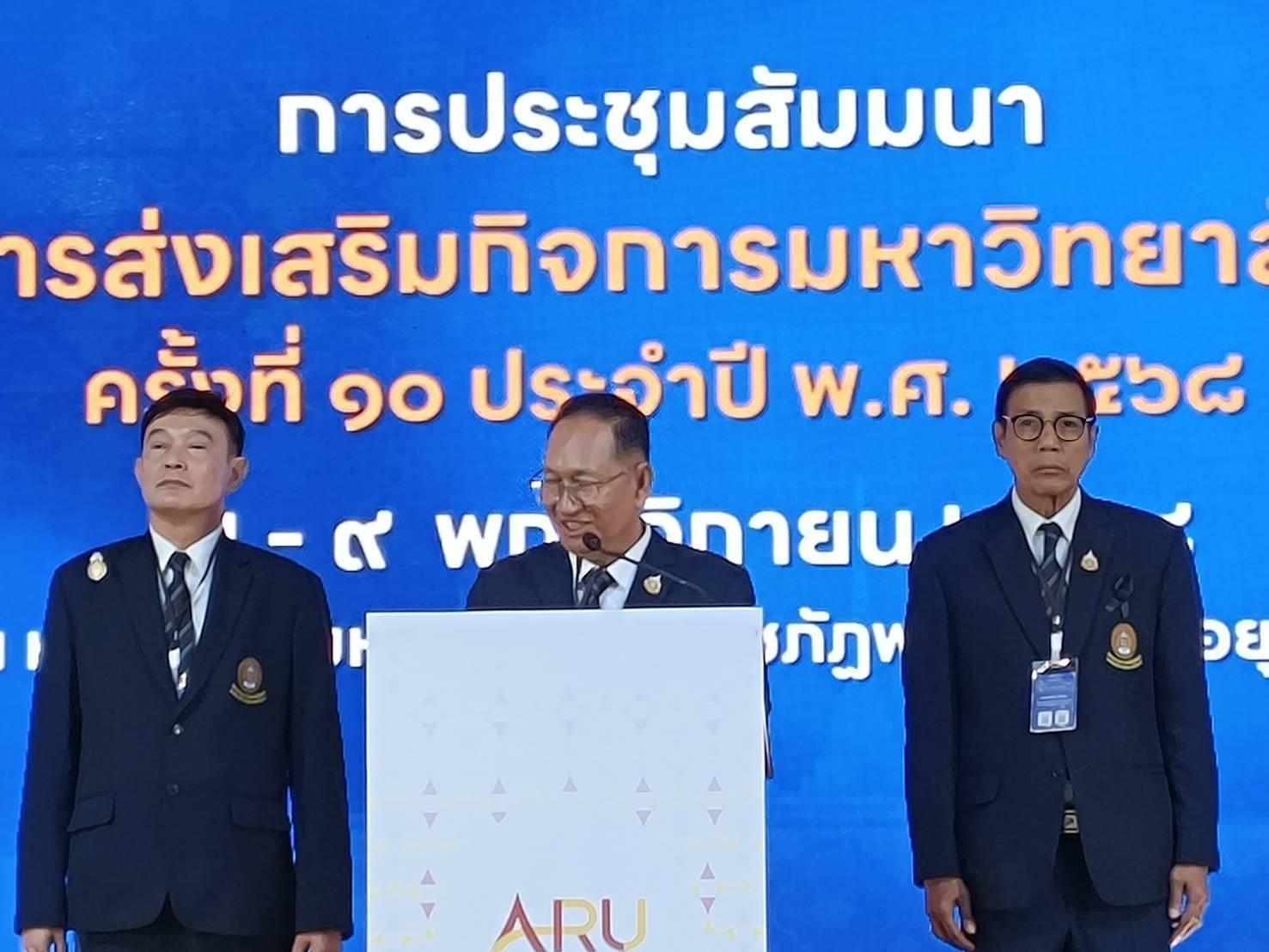 วันนี้ ( 8 พ.ย.68) ที่มหาวิทยาลัยราชภัฏพระนครศรีอยุธยา นายสุรศักดิ์ พันธ์เจริญวรกุล รัฐมนตรีว่าการกระทรวงการอุดมศึกษา วิทยาศาสตร์ วิจัย และนวัตกรรม เป็นประธานเปิดการประชุมสัมมนาคณะกรรมการส่งเสริมกิจการมหาวิทยาลัยทั่วประเทศ ครั้งที่ 10 “Soft Power รักษ์ไทย รักษ์ธรรม เลิศล้ำมรดกโลก” ระหว่างวันที่ 7-9 พฤศจิกายน 2568 จัดขึ้น โดมหาวิทยาลัยราชภัฏพระนครศรีอยุธยา มี รศ. ดร.ชูสิทธิ์ ประดับเพ็ชร์ อธิการบดีมหาวิทยาลัยราชภัฏพระนครศรีอยุธยา ดร.ปรีชา ประสพผล ประธานคณะกรรมการส่งเสริมกิจการมหาวิทยาลัยราชภัฏพระนครศรีอยุธยา และนายประพันธ์ ตรีบุปผา รองผู้ว่าราชการจังหวัดพระนครศรีอยุธยา ร่วมให้การต้อนรับ