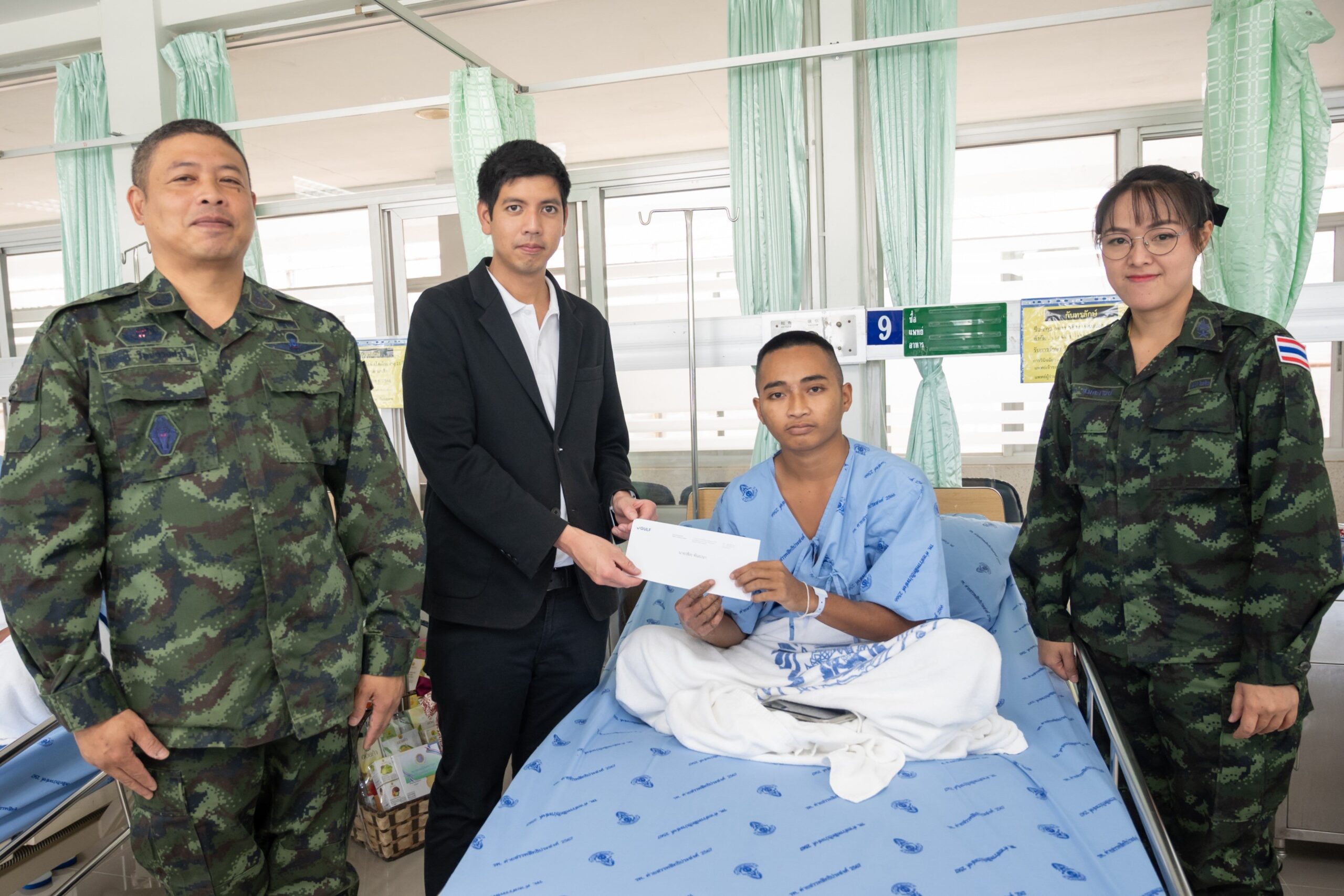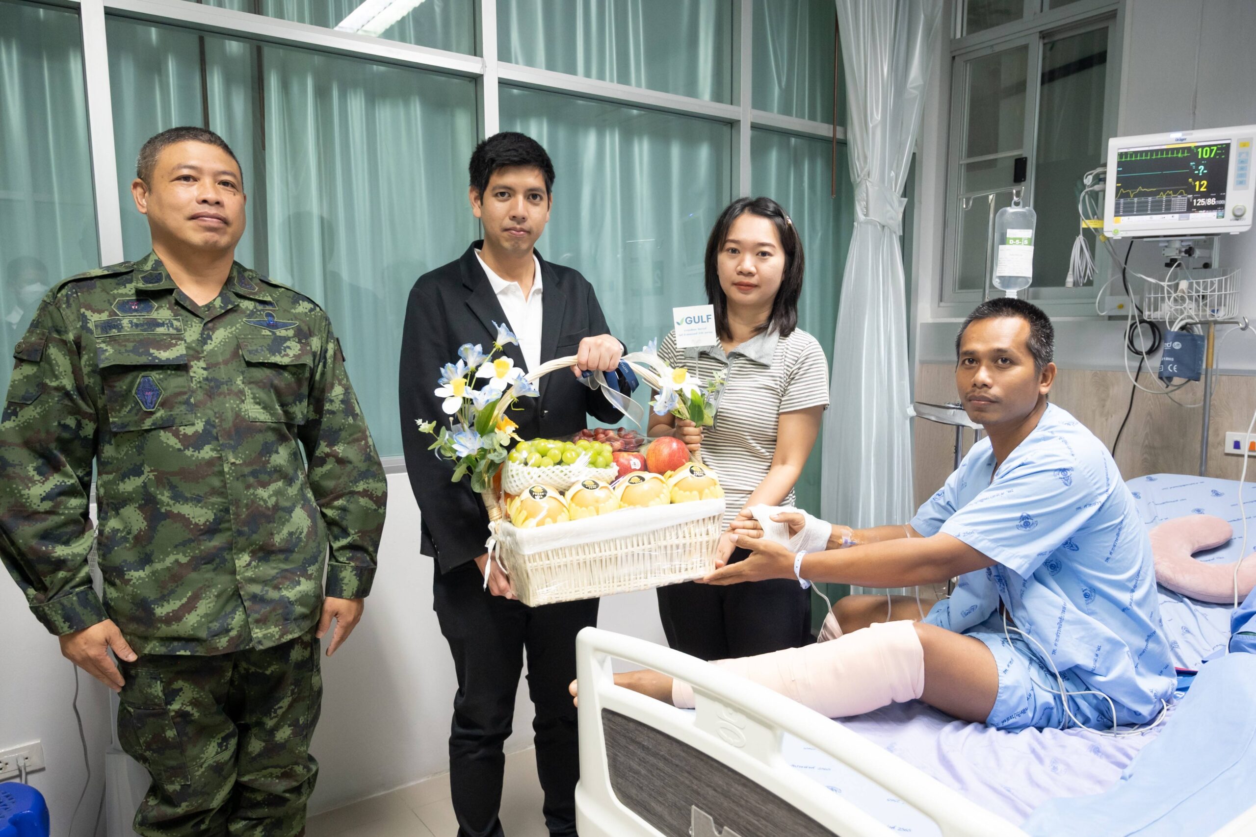 นายสิตมน รัตนาวะดี ผู้ช่วยรองประธานเจ้าหน้าที่บริหาร บริษัท กัลฟ์ ดีเวลลอปเมนท์ จำกัด (มหาชน) กล่าวว่า “หลังจากได้ทราบข่าวพี่ ๆ ทหารแนวหน้าได้รับบาดเจ็บจากการเหยียบกับระเบิดขณะปฏิบัติหน้าที่ลาดตระเวนพื้นที่ชายแดนไทย-กัมพูชา บริเวณห้วยตามาเรีย อ.กันทรลักษ์ จ.ศรีสะเกษ ผมรู้สึกเป็นห่วงอย่างมาก ภารกิจที่พวกเขาทำเพื่อปกป้องประเทศคือหน้าที่ที่หนักและเสี่ยง แต่เต็มไปด้วยความเสียสละ ผมจึงตั้งใจเดินทางมาเยี่ยมด้วยตัวเอง พร้อมกับมอบเงินเช่วยเหลือจากกองทุน 100 ล้านบาทที่ GULF ได้จัดตั้งขึ้น เพื่อสร้างขวัญกำลังใจแก่เหล่าพี่ ๆ ทหาร และครอบครัวให้สามารถกลับมาใช้ชีวิตได้อย่างเข้มแข็ง”