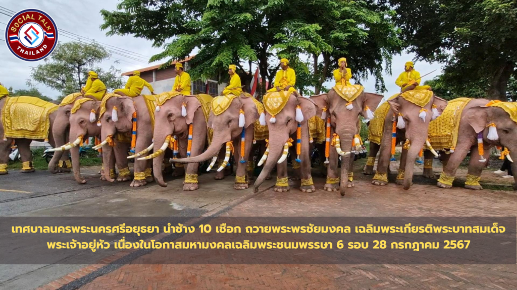 เทศบาลนครพระนครศรีอยุธยา นำช้าง 10 เชือก ถวายพระพรชัยมงคล เฉลิมพระเกียรติพระบาทสมเด็จพระเจ้าอยู่หัว เนื่องในโอกาสมหามงคลเฉลิมพระชนมพรรษา 6 รอบ 28 กรกฎาคม 2567