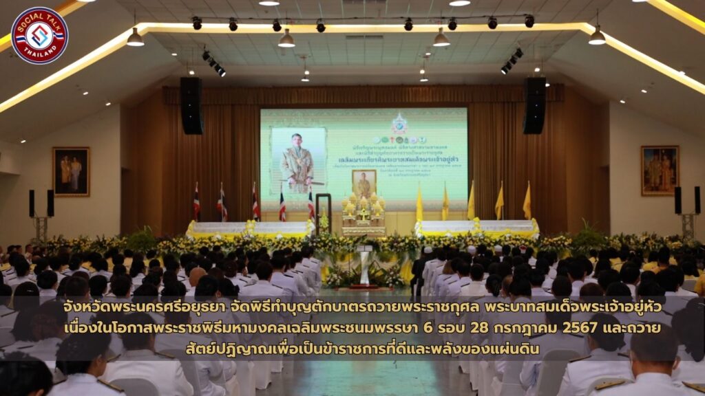 จังหวัดพระนครศรีอยุธยา จัดพิธีทำบุญตักบาตรถวายพระราชกุศล พระบาทสมเด็จพระเจ้าอยู่หัว เนื่องในโอกาสพระราชพิธีมหามงคลเฉลิมพระชนมพรรษา 6 รอบ 28 กรกฎาคม 2567 และถวายสัตย์ปฏิญาณเพื่อเป็นข้าราชการที่ดีและพลังของแผ่นดิน