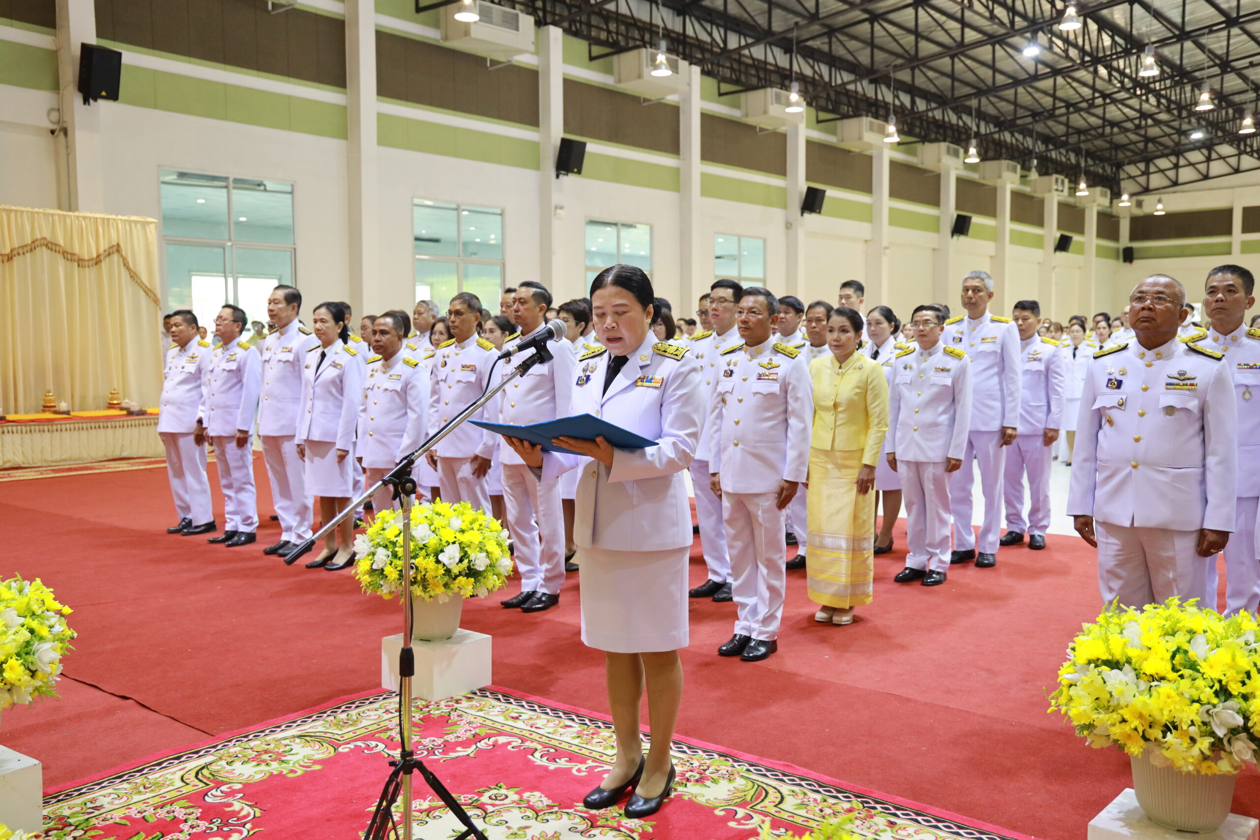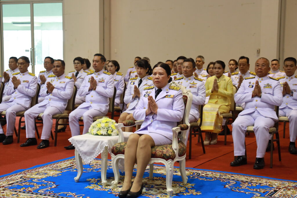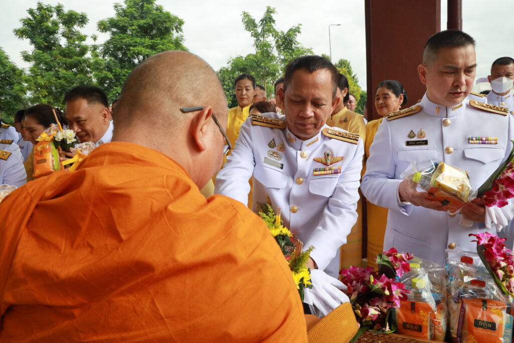 ต่อมา ในเวลา 08.00 น. นางสุภาพรรณ หมั่นเจริญ รองผู้ว่าราชการจังหวัดเชียงราย ประธานในพิธี นำผู้เข้าร่วมพิธีถวายสัตย์ปฏิญาณเพื่อเป็นข้าราชการที่ดีและพลังของแผ่นดิน เบื้องหน้าพระบรมฉายาลักษณ์พระบาทสมเด็จพระเจ้าอยู่หัว จากนั้น ประธานในพิธีพร้อมด้วยหัวหน้าส่วนราชการ ข้าราชการและประชาชน ร่วมทำบุญตักบาตรถวายเป็นพระราชกุศล โดยมีพระสงฆ์และสามเณร จำนวน 73 รูป รับบิณฑบาต