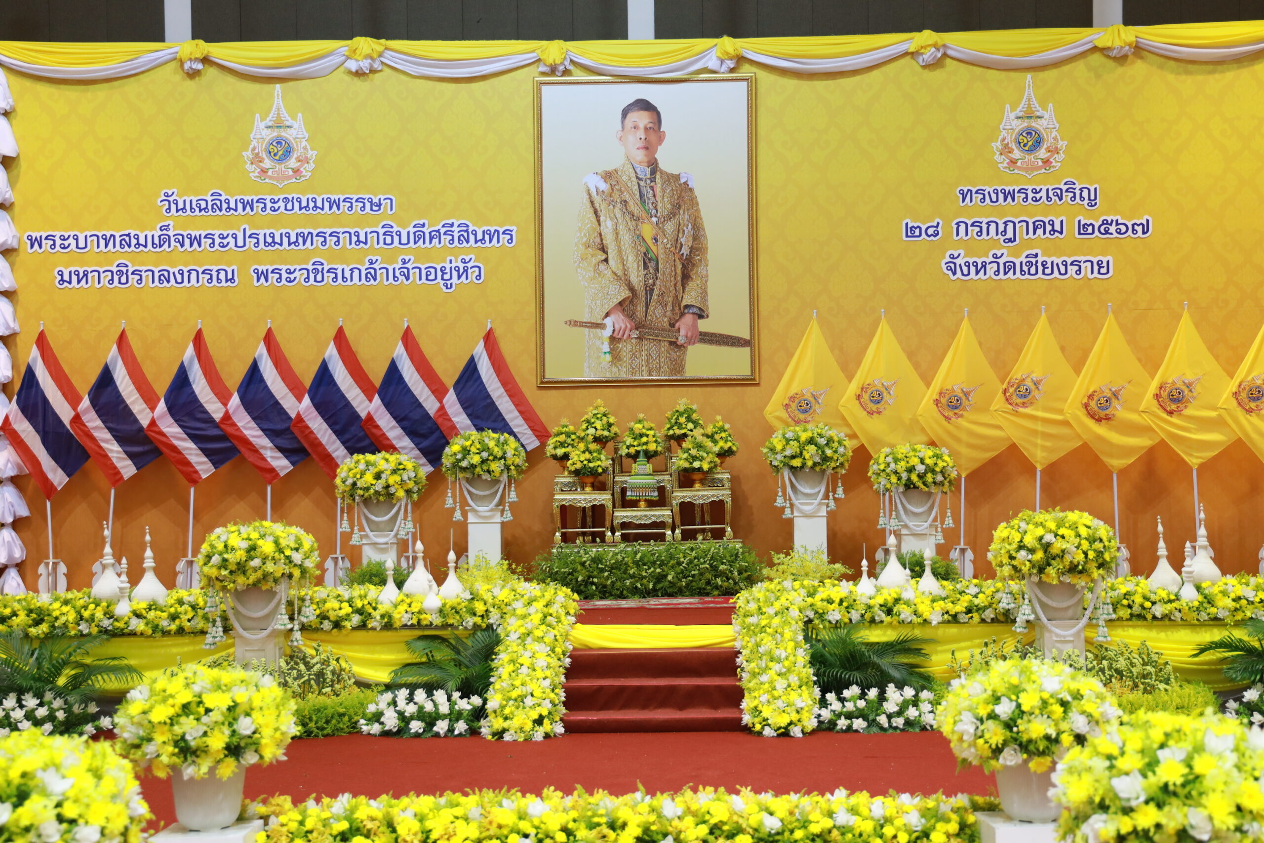 และในช่วงเย็นของวันนี้จะเป็นพิธีถวายเครื่องราชสักการะและวางพานพุ่ม และพิธีจุดเทียนถวายพระพรชัยมงคล ในเวลา 19.19 น. ณ ศูนย์ประชุมและแสดงสินค้านานาชาติ GMS จังหวัดเชียงราย อำเภอเมืองเชียงราย จังหวัดเชียงราย ขอเชิญพสกนิกรทุกหมู่เหล่าร่วมกิจกรรมโดยพร้อมเพรียงกัน…