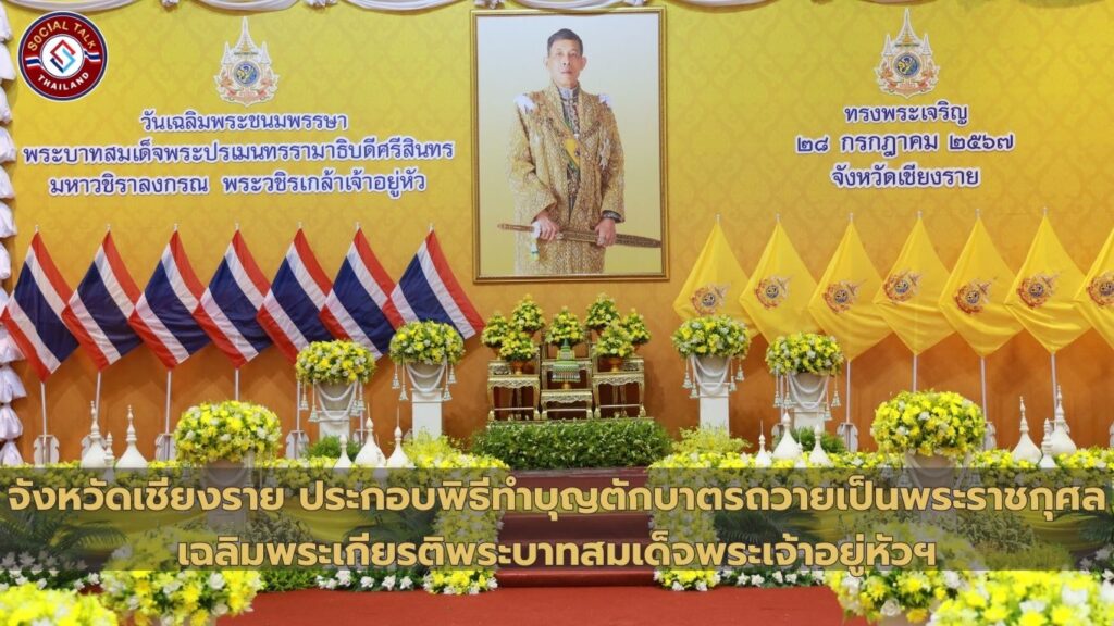 วันนี้ (28 ก.ค. 67) เวลา 07.30 น. ณ ศูนย์ประชุมและแสดงสินค้านานาชาติ GMS จังหวัดเชียงราย อำเภอเมืองเชียงราย จังหวัดเชียงราย นางสุภาพรรณ หมั่นเจริญ รองผู้ว่าราชการจังหวัดเชียงราย เป็นประธานในพิธีทำบุญตักบาตรถวายเป็นพระราชกุศล เฉลิมพระเกียรติพระบาทสมเด็จพระเจ้าอยู่หัว เนื่องในโอกาสพระราชพิธีมหามงคลเฉลิมพระชนมพรรษา 6 รอบ 28 กรกฎาคม 2567 โดยมี รองผู้ว่าราชการจังหวัดเชียงราย ผู้พิพากษาหัวหน้าศาล ทหาร ตำรวจ หัวหน้าส่วนราชการ ผู้แทนหน่วยงานรัฐวิสาหกิจ องค์กรปกครองส่วนท้องถิ่น และประชาชนเข้าร่วมพิธีฯ จำนวนมาก