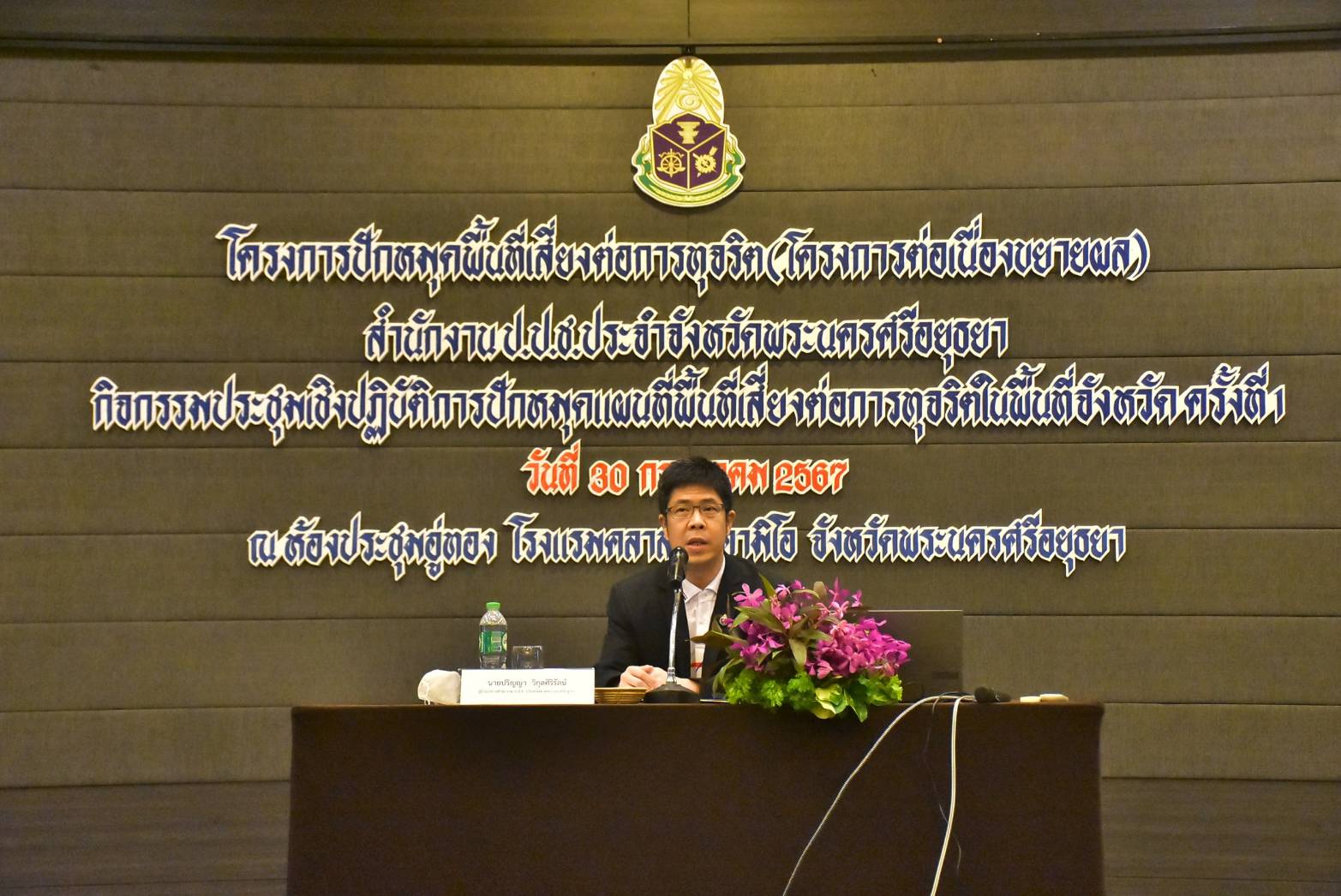 วันนี้ (30 ก.ค.67) ที่โรงแรมคลาสสิค คามิโอ อยุธยา นายปริญญา วิกุลศิริรัตน์ ผู้อำนวยการสำนักงาน ป.ป.ช. ประจำจังหวัดพระนครศรีอยุธยา เป็นประธานเปิดโครงการปักหมุดพื้นที่เสี่ยงต่อการทุจริต (โครงการต่อเนื่องขยายผล) กิจกรรมประชุมเชิงปฏิบัติการปักหมุดแผนที่พื้นที่เสี่ยงต่อการทุจริตในจังหวัดพระนครศรีอยุธยา ครั้งที่ 1 โดยมุ่งเน้น “ป้องนำปราบ” คือ การป้องกันการทุจริต ป้องกันความเสียหาย สร้างจิตสำนึกค่านิยมซื่อสัตย์สุจริต และไม่ทนต่อการทุจริต