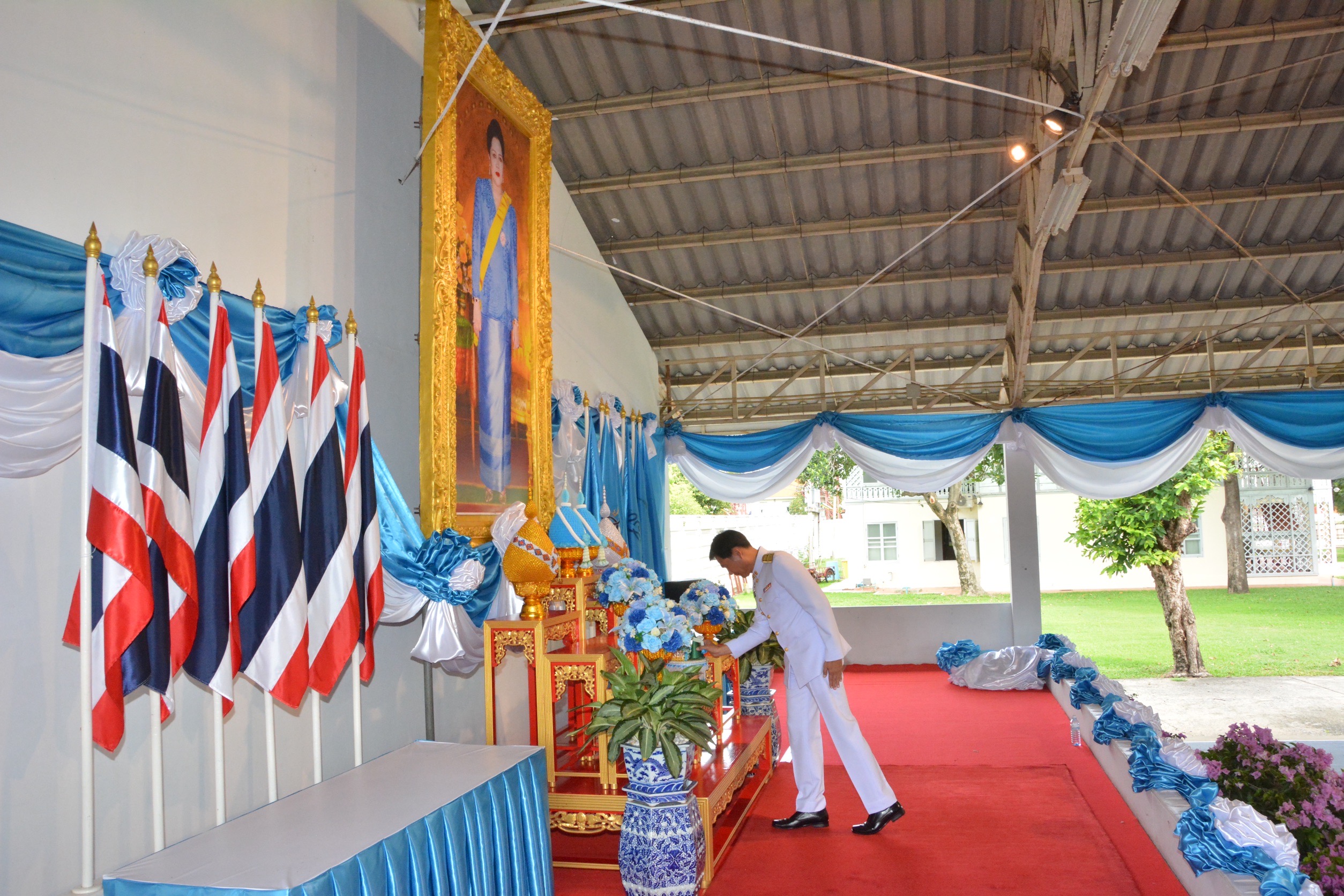 วันนี้ 12 สิงหาคม 2567 เวลา 09.00 น. ที่ พระราชวังบางปะอิน อำเภอบางปะอิน จังหวัดพระนครศรีอยุธยา นายนิวัฒน์ รุ่งสาคร ผู้ว่าราชการจังหวัดพระนครศรีอยุธยา พร้อมด้วยนางวัชราภรณ์ รุ่งสาคร นายกเหล่ากาชาดจังหวัดพระนครศรีอยุธยา เป็นประธานพิธีถวายพระพรชัยมงคลเฉลิมพระเกียรติสมเด็จพระนางเจ้าสิริกิติ์ พระบรมราชินีนาถ พระบรมราชชนนี้พันปีหลวง เนื่องในโอกาสวันเฉลิมพระชนมพรรษา 12 สิงหาคม 2567 โดยมีคณะรองผู้ว่าราชการจังหวัดพระนครศรีอยุธยา หัวหน้าส่วนราชการ ข้าราชการ และหน่วยงานที่เกี่ยวข้อง เข้าร่วมพิธี . โดยประธานในพิธี เปิดกรวยกระทงดอกไม้ธูปเทียนแพ ถวายราชสักการะหน้าพระฉายาลักษณ์กล่าวถวายพระพรชัยมงคลแด่สมเด็จพระนางเจ้าสิริกิติ์ พระบรมราชินีนาถ พระบรมราชชนนี พันปีหลวงและเจ้าหน้าที่ทุกท่านลงนามถวายพระพรชัยมงคลในสมุดลงนามถวายพระพรชัยมงคลเป็นอันเสร็จพิธี