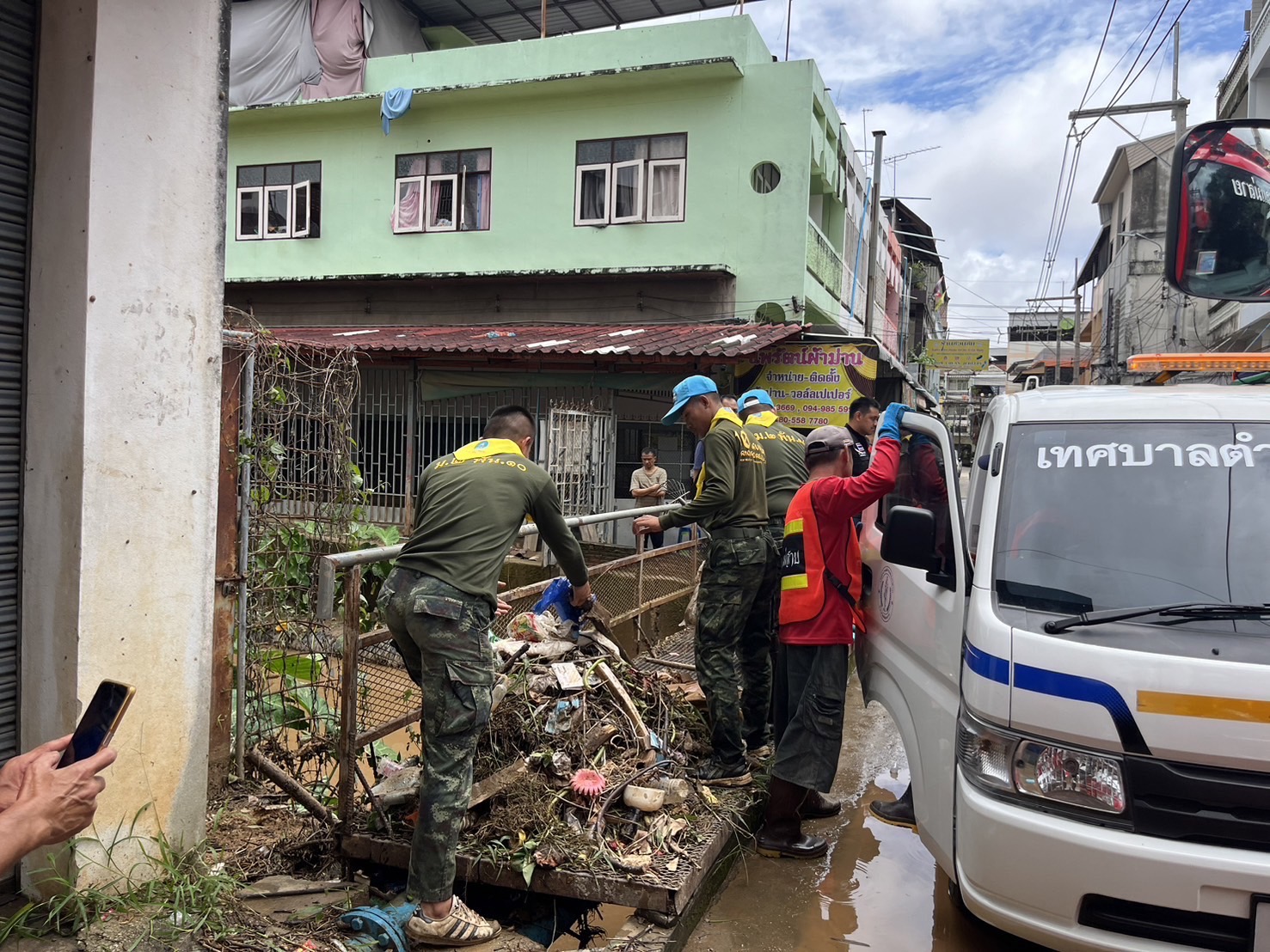 1. บริเวณตลาดสายลมจอย (ตลาดชายแดนไทย-เมียนมา) บ้านแม่สาย ตำบลเวียงพางคำ อำเภอแม่สายฯ ระดับน้ำในแม่น้ำสายล้นตลิ่งเข้าท่วม หน่วยจึงได้จัดกำลังพลร่วมกับหน่วยงานในพื้นที่ และประชาชนในพื้นที่ ระดมความร่วมมือช่วยเหลือ ช่วยเหลือโดยการยกสินค้าขึ้นที่สูงตั้งแต่ในห้วงที่ผ่านมา ปัจจุบันระดับน้ำได้ลดลงแล้วจึงได้ร่วมกันทำความสะอาดคราบดินโคลน ในพื้นที่ตลาดฯ