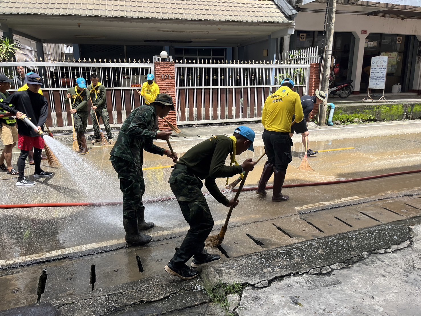 2. บริเวณบ้านเกาะทราย หมู่ 7 ตำบลแม่สาย อำเภอแม่สายฯ ซึ่งได้รับผลกระทบจากมวลน้ำที่ล้นตลิ่งจากแม่น้ำสายเช่นกันนั้น ปัจจุบันระดับน้ำลดลงจนเข้าสู่ภาวะปกติแล้ว หน่วยจึงได้จัดกำลังพลร่วมกับหน่วยงานในพื้นที่และประชานในหมู่บ้าน รวมพลังกันทำความสะอาดคราบดินโคลนภายในหมู่บ้าน ปัจจุบันทั้ง 2 จุด ได้ดำเนินการเสร็จเรียบร้อยแล้ว