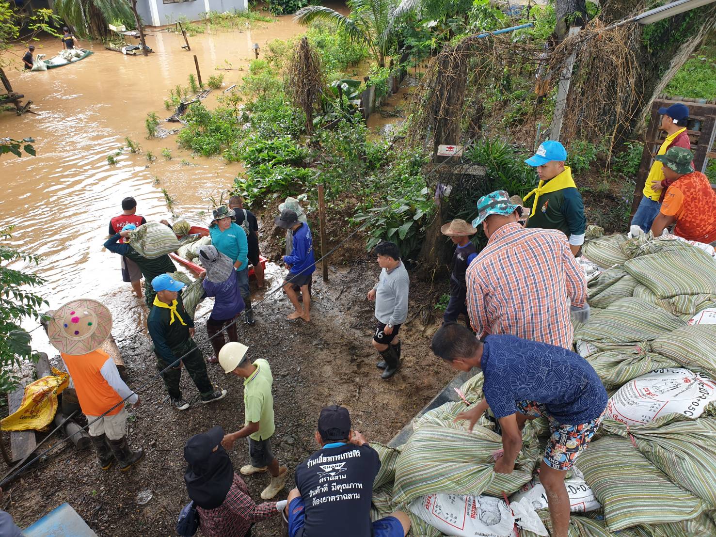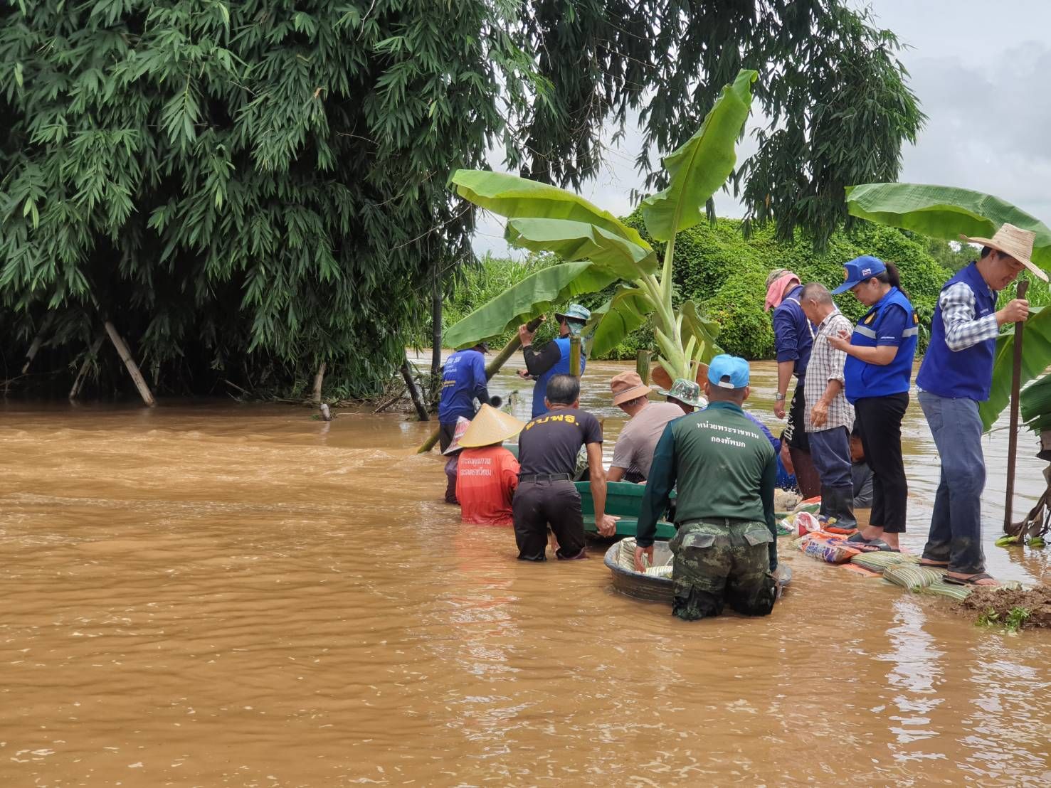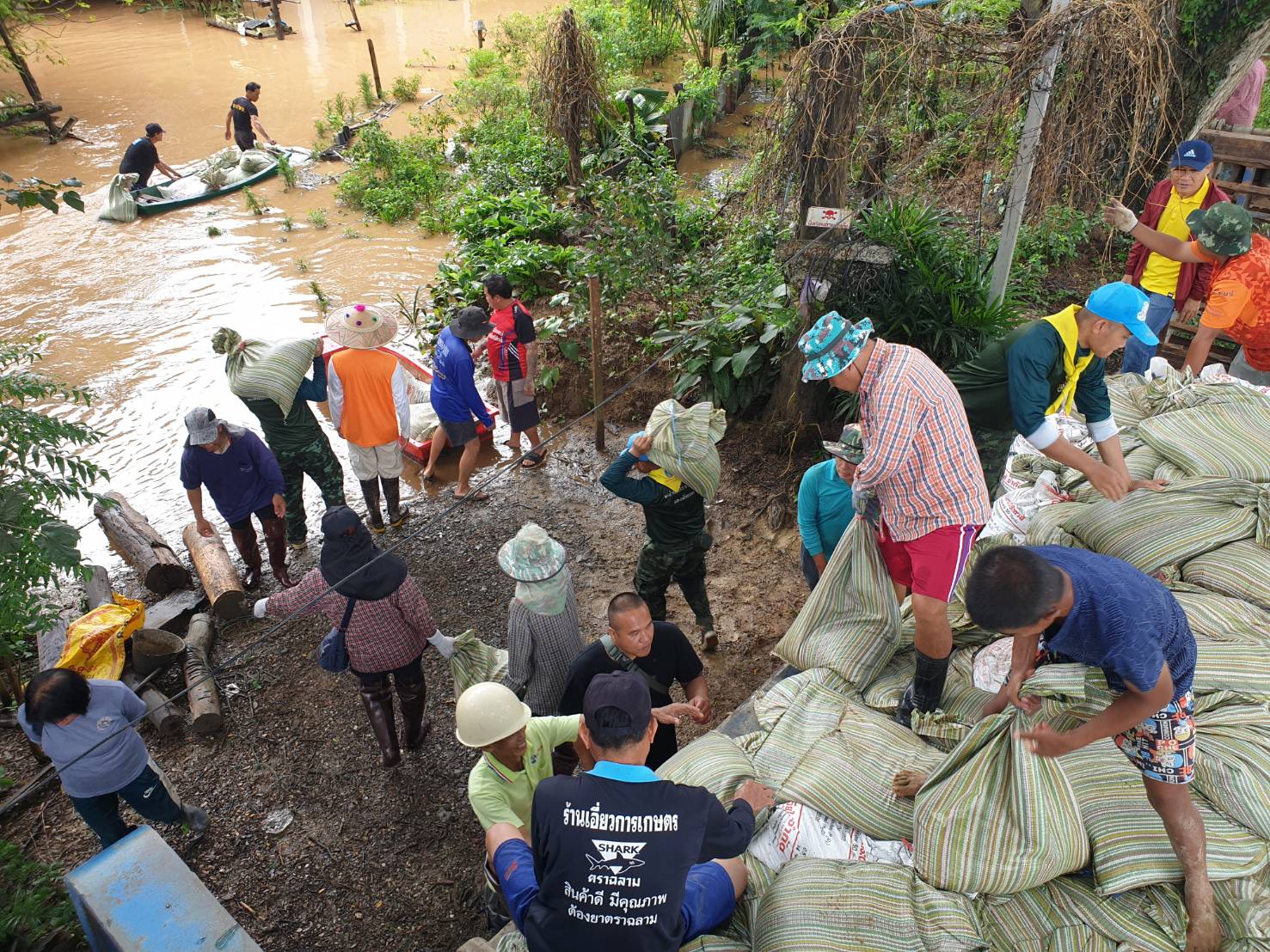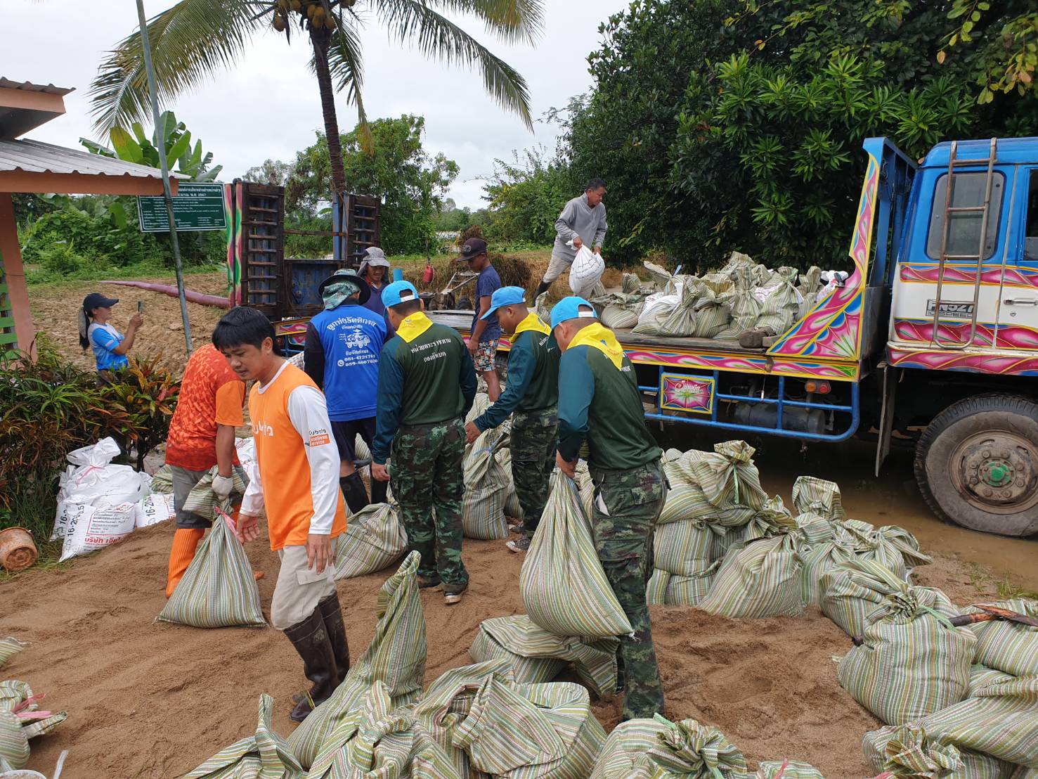 4. บริเวณบ้านดงป่าสัก หมู่ 3 ตำบลบ้านด้าย อำเภอแม่สายฯ หน่วยได้จัดกำลังพลร่วมกับหน่วยงานในพื้นที่ และประชาชนในพื้นที่ทำการบรรจุกระสอบทราย จำนวน 1,000 ลูก หลังจากนั้นจึงได้นำไปทำเป็นพนังกั้นน้ำ บริเวณจุดเสี่ยงที่คาดว่าน้ำในคลองแม่คำ น้ำจะทะลักเข้าท่วมภายในหมู่บ้าน